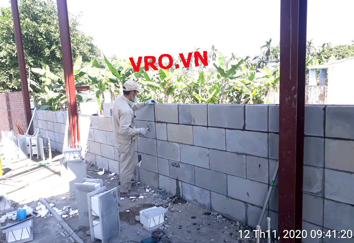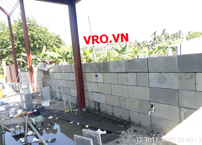 Gạch 3D VRO, Gạch lõi xốp, Gạch nhẹ, Gạch không nung, Gạch cách âm, cách nhiệt 3D VRO - Thi công gạch nhẹ, gạch không nung, gạch cách âm, cách nhiệt 3D VRO-Những hình ảnh thi công công trình xưởng cơ khí Mạnh Linh - Hà Nội.