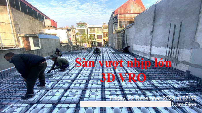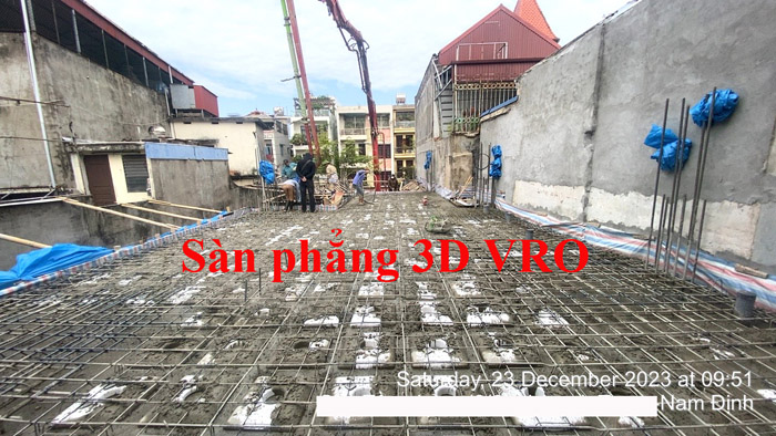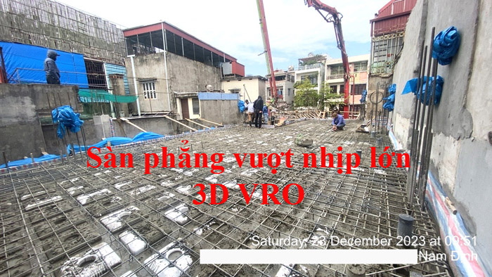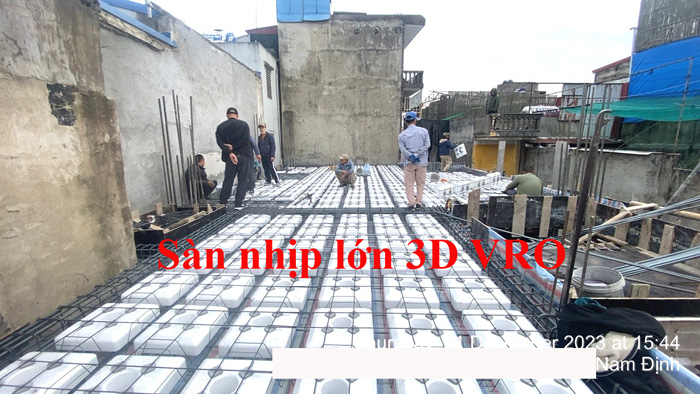 Sàn nhịp lớn, sàn vượt nhịp lớn, sàn phẳng, sàn xốp, sàn phẳng lõi xốp, sàn phẳng không dầm, sàn phẳng vượt nhịp lớn VRO - Thi công sàn tầng 3 văn phòng Thành Trung, Nam Định.