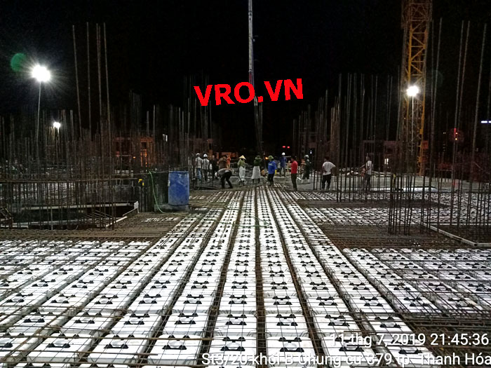 Sàn vượt nhịp lớn, Sàn phẳng, sàn xốp, sàn phẳng lõi xốp, sàn phẳng xốp, sàn phẳng vượt nhịp lớn, Sàn nhịp lớn, Sàn không dầm, sàn phẳng không dầm, sàn phẳng không dầm vượt nhịp lớn lõi rỗng 3D VRO PANEL sàn tầng 2 công trình chung cư 379 Tp. Thanh Hóa.