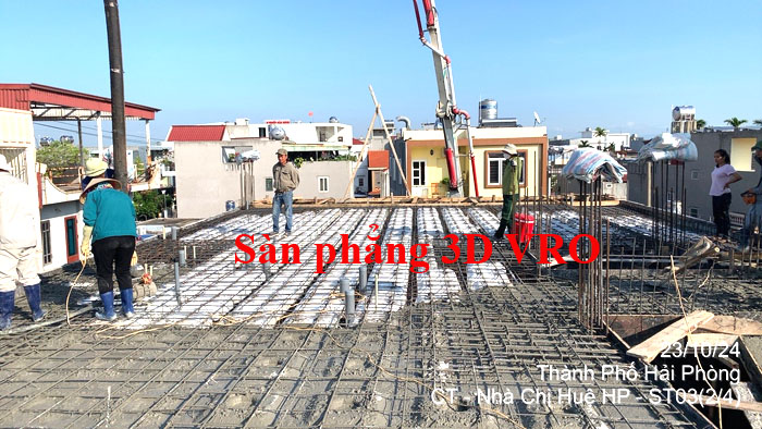 Sàn nhịp lớn, Sàn phẳng, sàn phẳng lõi xốp, sàn xốp, sàn phẳng không dầm, sàn phẳng vượt nhịp lớn VRO - Thi công sàn tầng 3 ct Mai Huệ, Hải Phòng