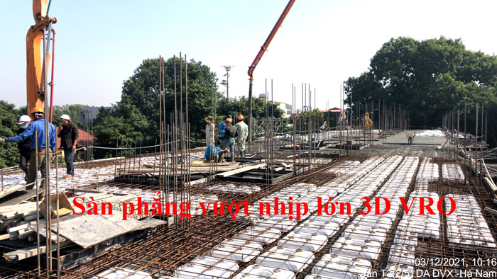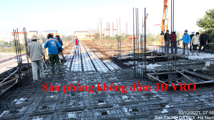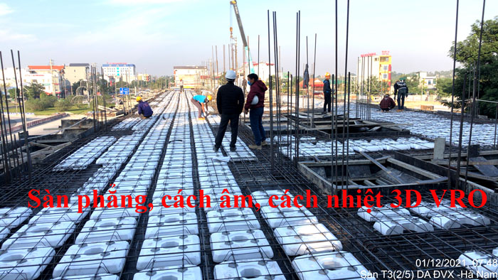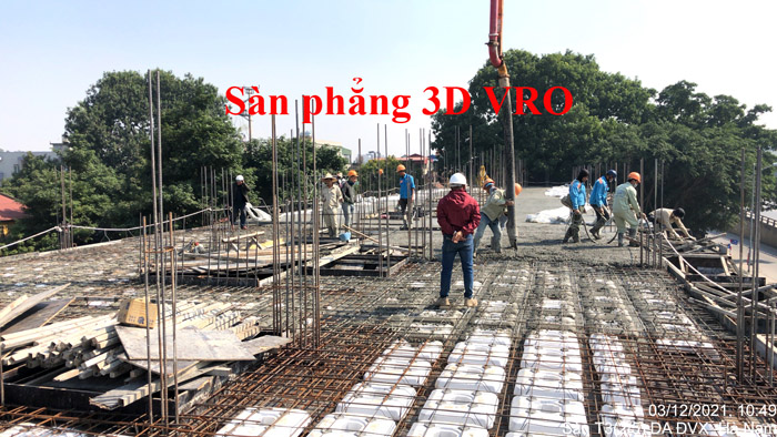 Sàn phẳng không dầm, sàn phẳng, sàn nhịp lớn, sàn vượt nhịp lớn, sàn phẳng vượt nhịp lớn, sàn xốp, sàn lõi rỗng, sàn phẳng lõi xốp 3D VRO - Thi công sàn tầng 3 dự án Đồng Văn Xanh, Hà Nam.(Diện Tích 816m2/sàn x 5sàn )