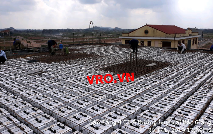 Sàn vượt nhịp lớn, Sàn nhẹ, sàn phẳng, sàn nhịp lớn, sàn không dầm lõi rỗng, sàn phẳng không dầm vượt nhịp lớn 3D PANEL VRO sàn tầng 4 công trình Hundai - Quảng Bình.