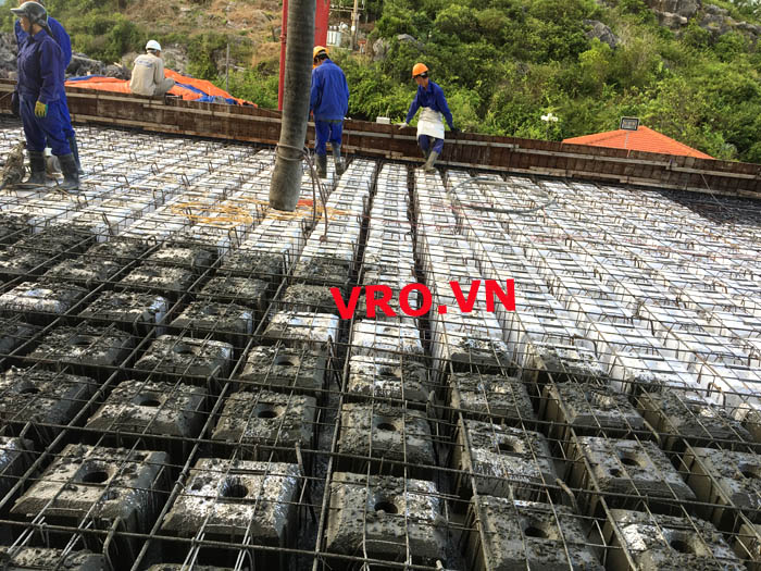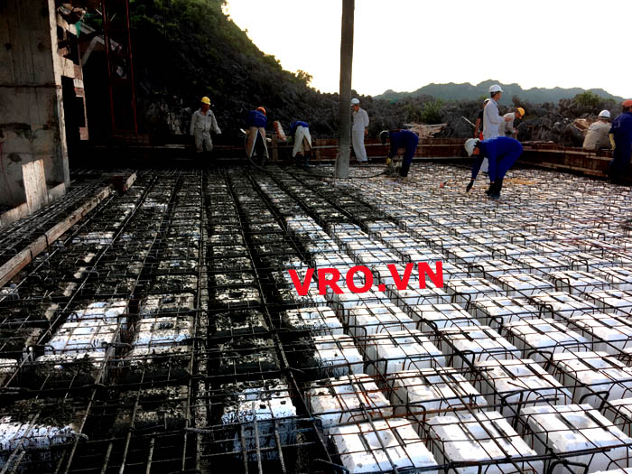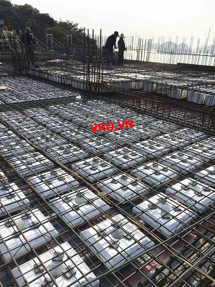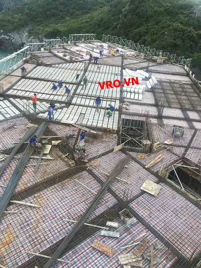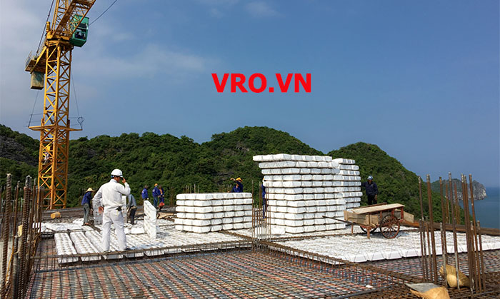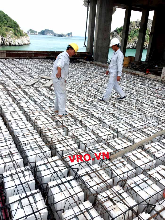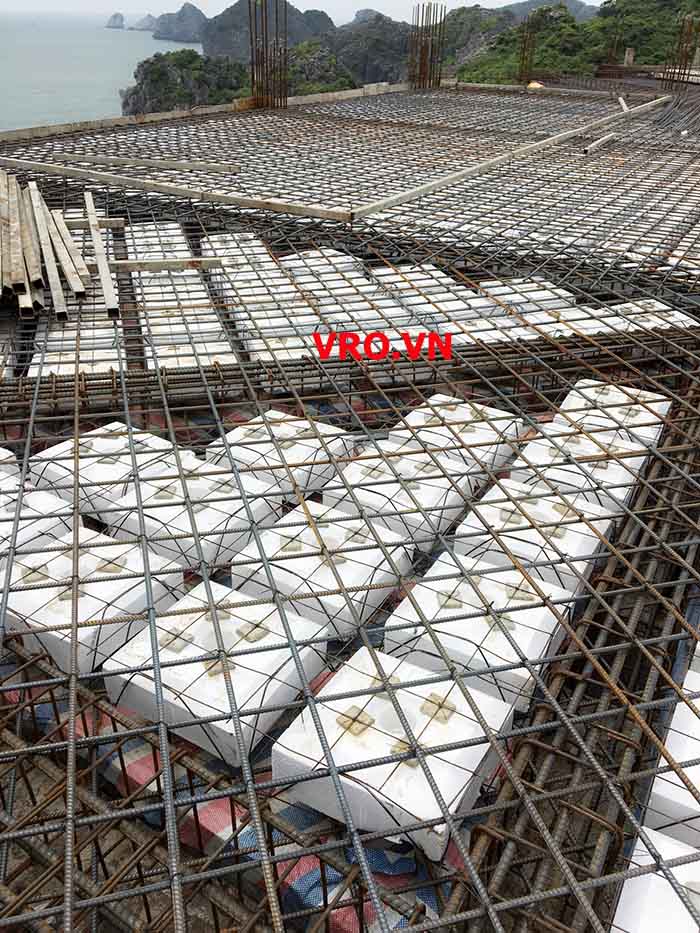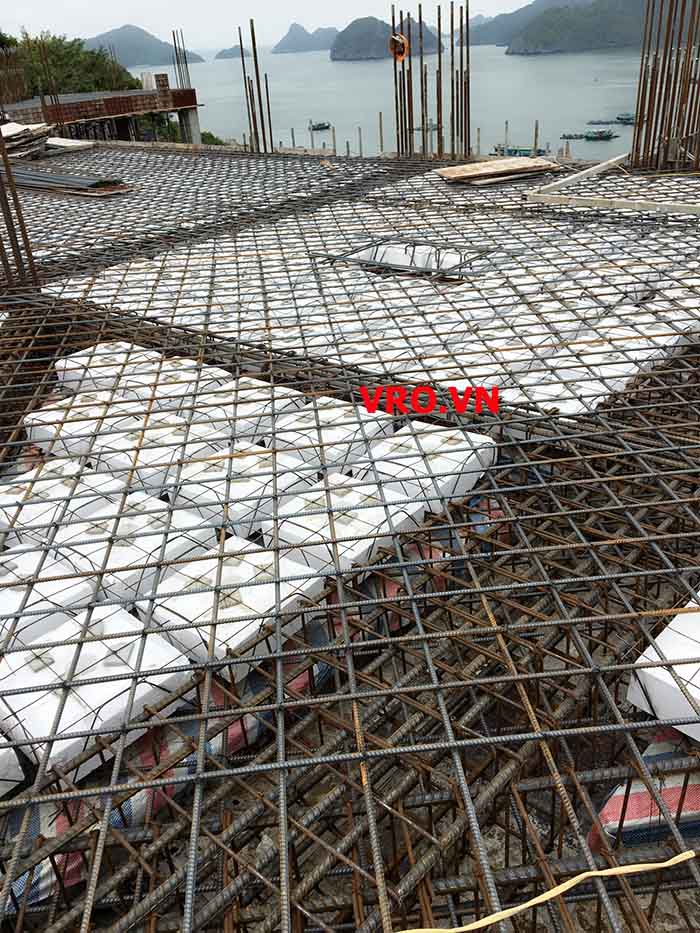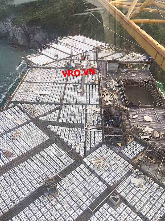 Sàn phẳng, sàn vượt nhịp lớn, sàn phẳng vượt nhịp lớn, sàn nhịp lớn, Sàn không dầm vượt nhịp lớn 3D PANEL VRO - Những hình ảnh thi công công nghệ sàn phẳng lõi rỗng vượt nhịp lớn VRO chống nóng sàn tầng 10 Sunrise - Cát Bà - Hải Phòng