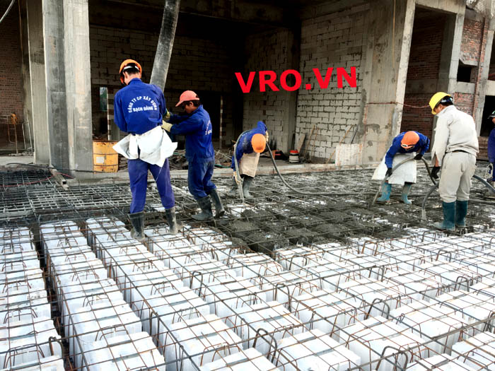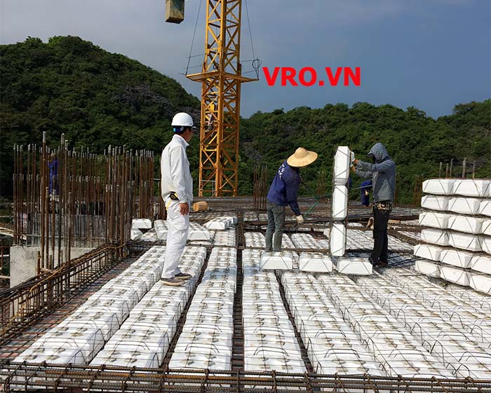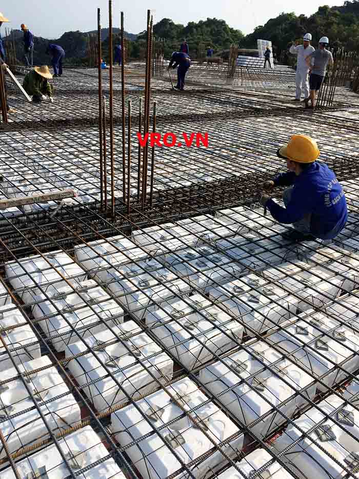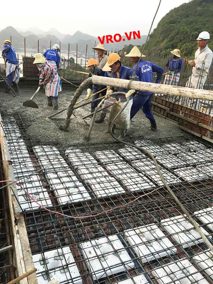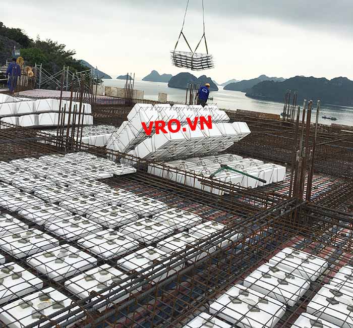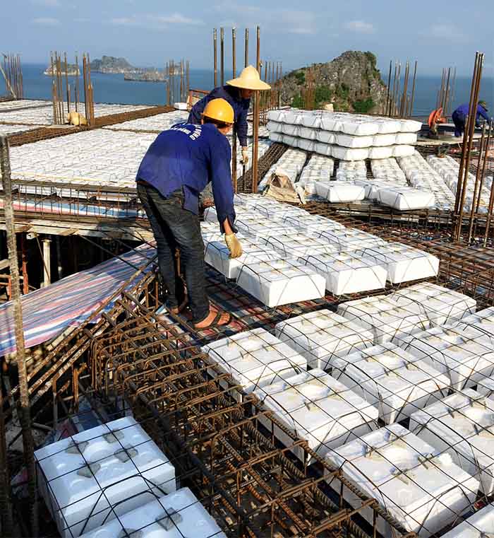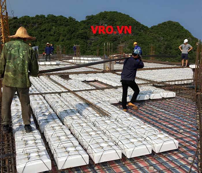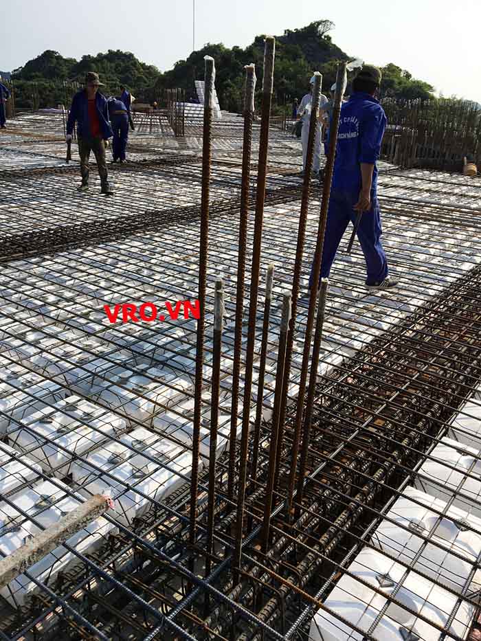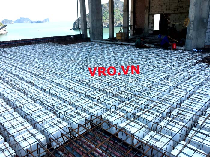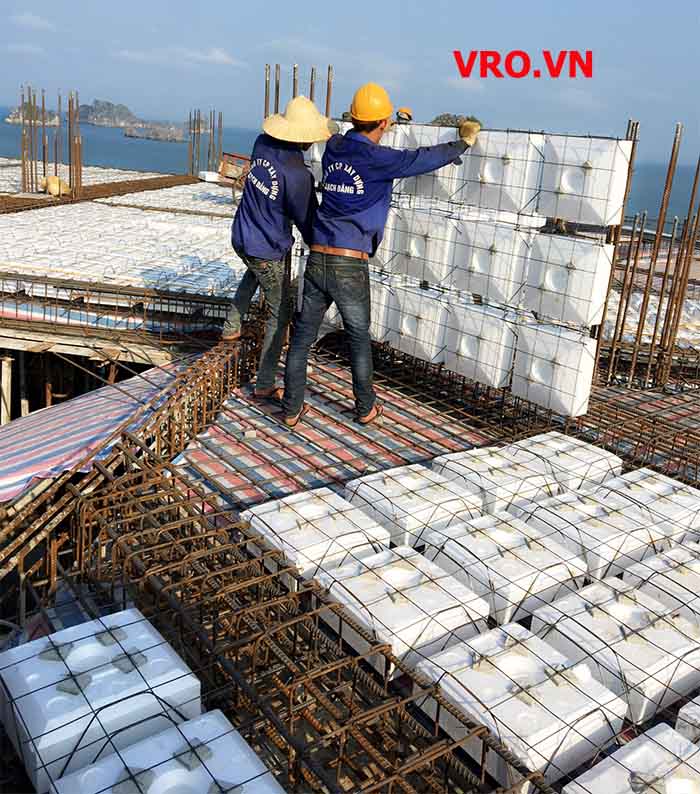 Sàn phẳng, sàn vượt nhịp lớn, sàn phẳng vượt nhịp lớn, sàn nhịp lớn, Sàn không dầm vượt nhịp lớn 3D PANEL VRO - Những hình ảnh thi công công nghệ sàn phẳng lõi rỗng vượt nhịp lớn VRO chống nóng sàn tầng 10 Sunrise - Cát Bà - Hải Phòng