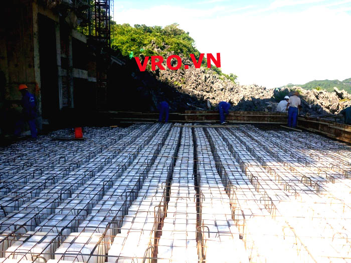 Sàn vượt nhịp lớn, sàn phẳng, sàn phẳng vượt nhịp lớn, Sàn không dầm vượt nhịp lớn 3D PANEL VRO - Những hình ảnh thi công sàn nhịp lớn, sàn không dầm 3D Panel VRO sàn sảnh công trình Sunrice - Cát Bà- Hải Phòng.