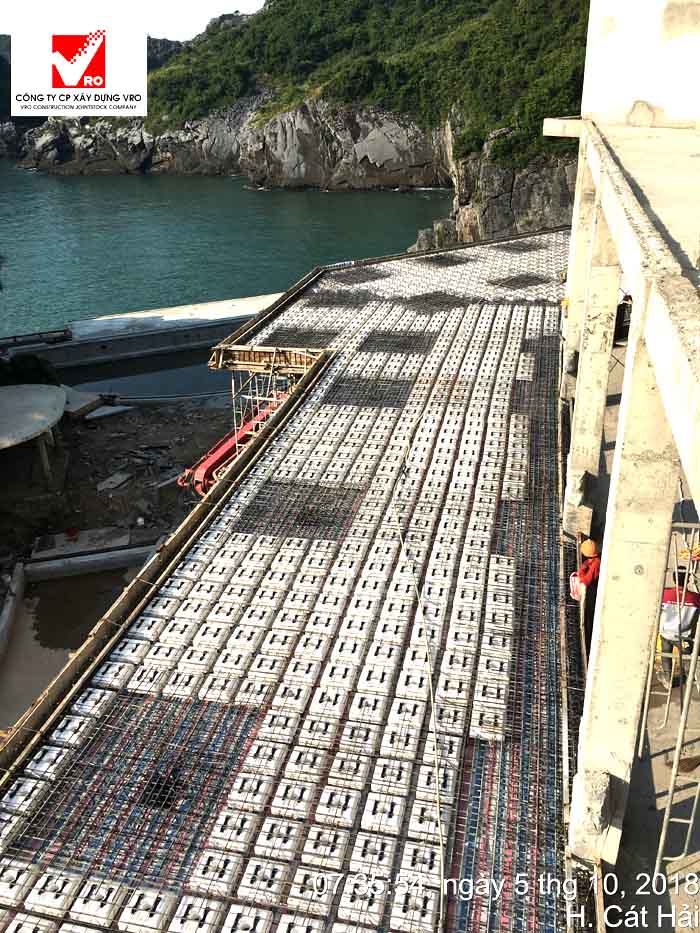 Sàn vượt nhịp lớn, sàn phẳng, sàn phẳng vượt nhịp lớn, Sàn không dầm vượt nhịp lớn 3D PANEL VRO - Những hình ảnh thi công công nghệ sàn phẳng lõi rỗng vượt nhịp lớn 3D VRO giai đoạn 2 Sunrise - Cát Bà - Hải Phòng.