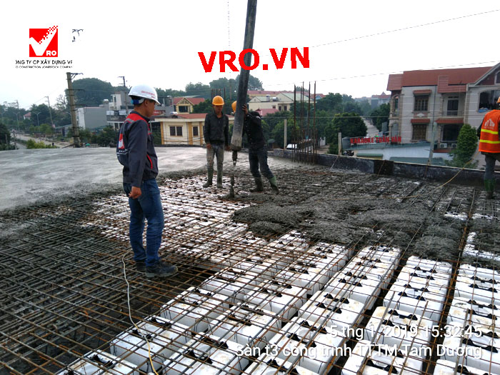 Sàn nhịp lớn, Sàn nhẹ, sàn phẳng vượt nhịp lớn, sàn phẳng không dầm, sàn cách âm, sàn cách nhiệt, thi công nhanh 3D PANEL VRO - Những hình ảnh thi công sàn tầng 2 công trình TTTM Tam Dương - Vĩnh Phúc.