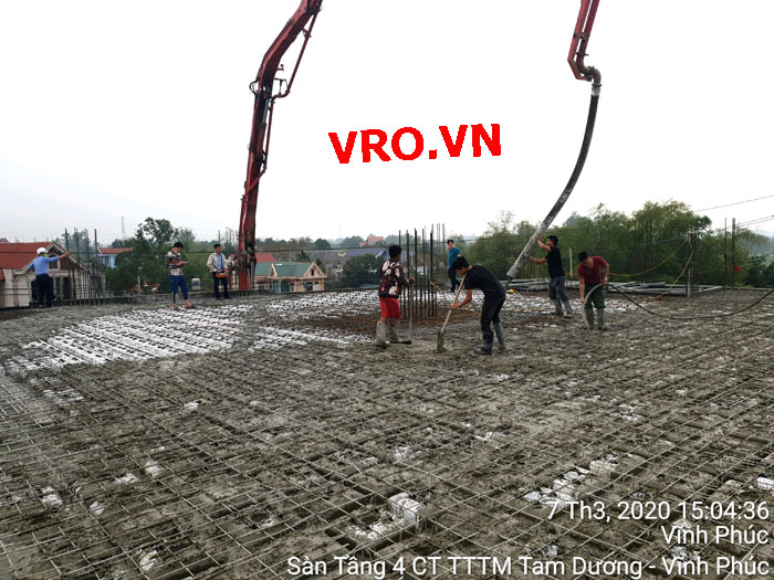 Sàn nhịp lớn, sàn phẳng, sàn vượt nhịp lớn, Sàn nhẹ, sàn phẳng vượt nhịp lớn, sàn phẳng không dầm, sàn phẳng lõi xốp, sàn cách âm, sàn cách nhiệt, thi công nhanh 3D PANEL VRO - Những hình ảnh thi công sàn tầng 4 công trình TTTM Tam Dương - Vĩnh Phúc.