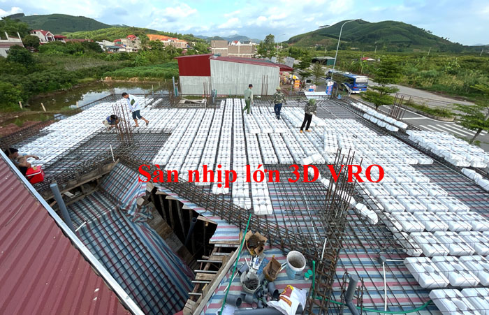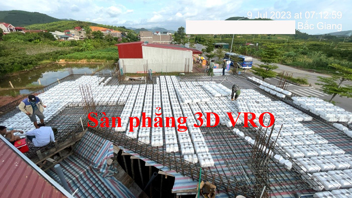Sàn phẳng lõi xốp, Sàn xốp, sàn vượt nhịp lớn, sàn phẳng, sàn phẳng không dầm, sàn nhịp lớn, sàn phẳng vượt nhịp lớn 3D VRO - Thi công sàn tầng 3 VP Cao Đại, Bắc Giang.
