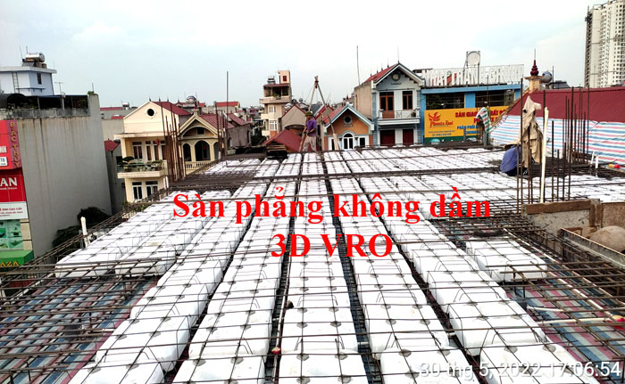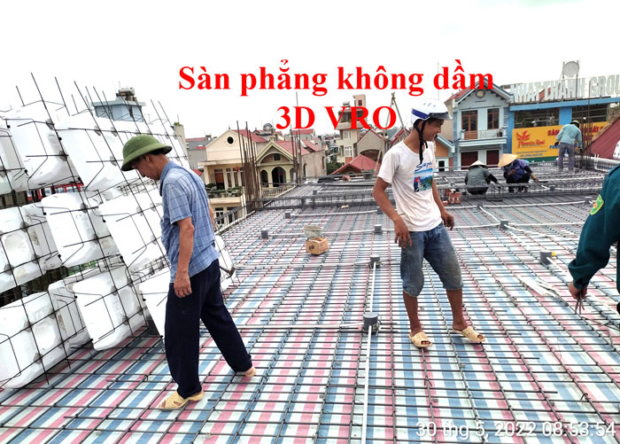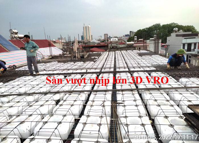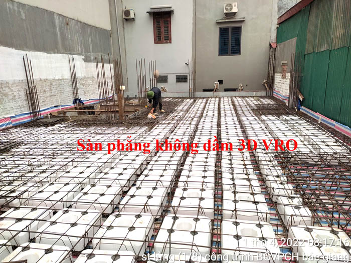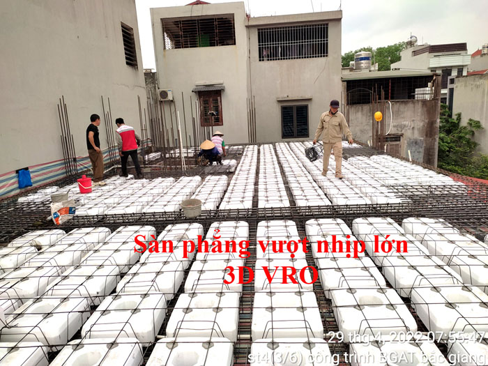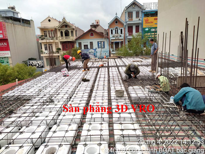 Sàn phẳng, sàn nhịp lớn, sàn phẳng vượt nhịp lớn, sàn không dầm, sàn phẳng không dầm vượt nhịp lớn, sàn vượt nhịp lớn, cách âm, cách nhiệt, thi công nhanh 3D VRO-Thi công sàn tầng 5 văn phòng công ty Mai Hương, Bắc Giang.