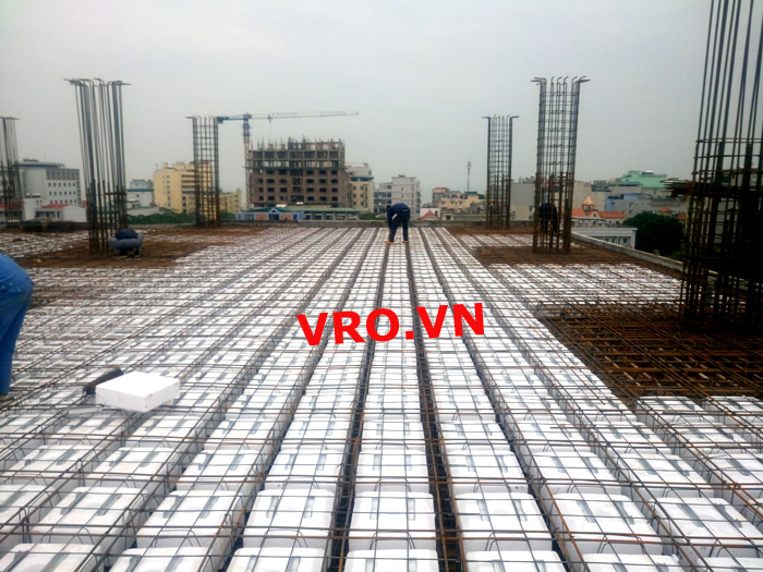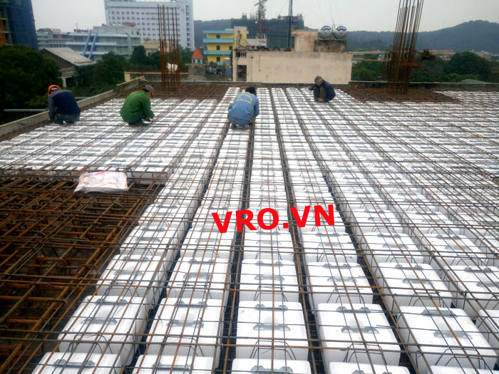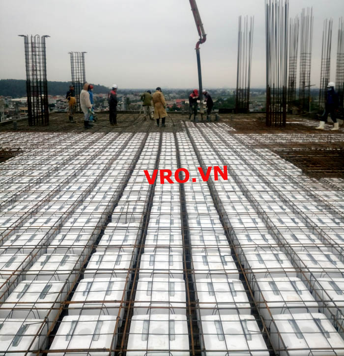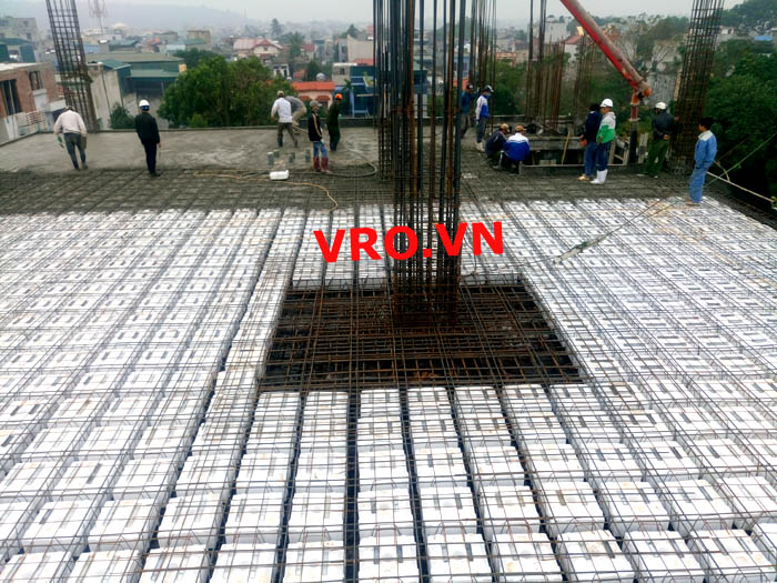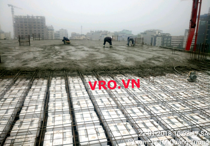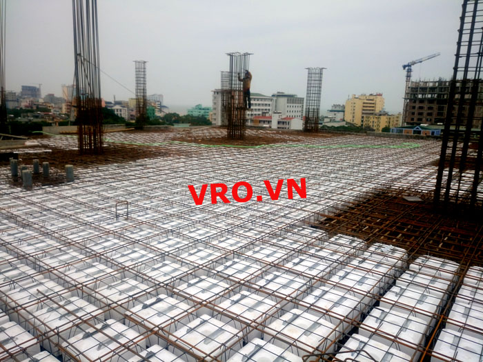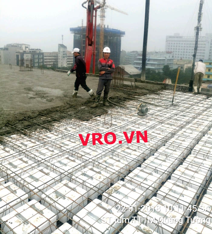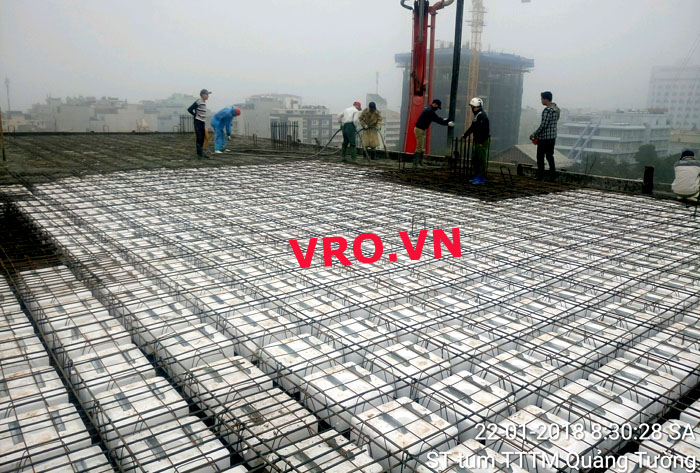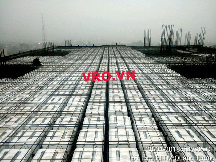 Sàn nhẹ, sàn lõi rỗng, sàn phẳng, sàn không dầm vượt nhịp lớn 3D PANEL VRO sàn tầng 7 công trình TTTM - Quảng Tường - Sầm Sơn- Thanh Hóa.