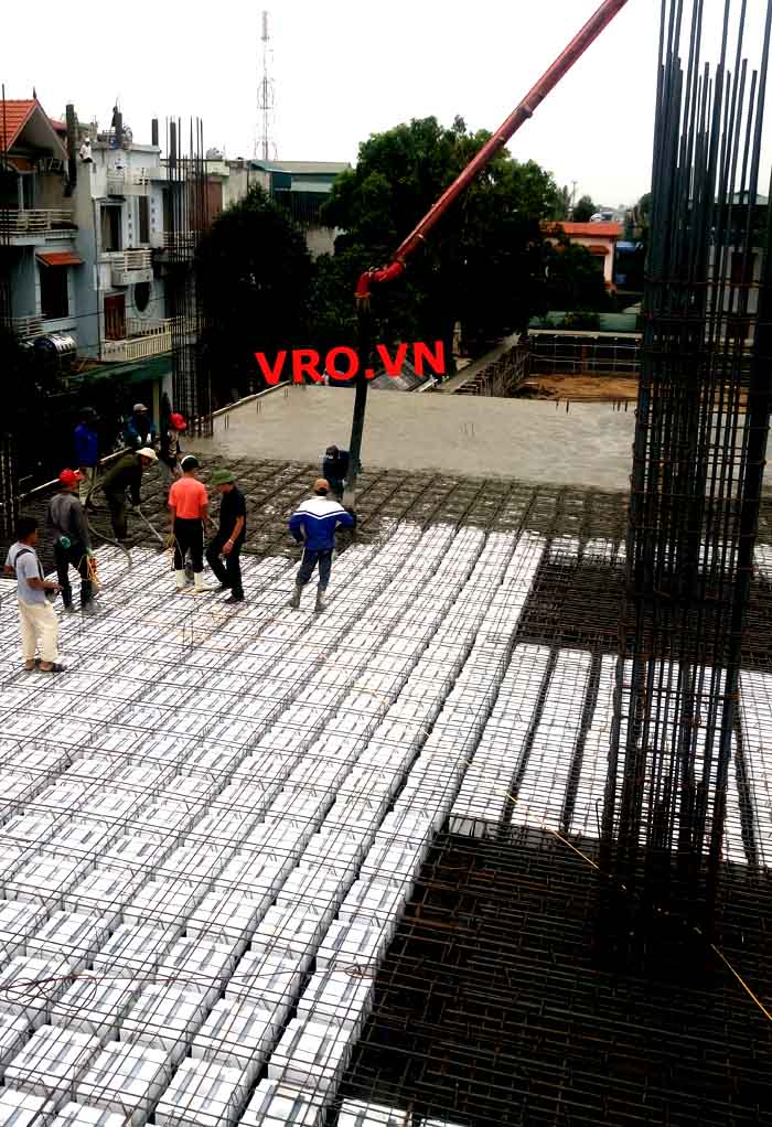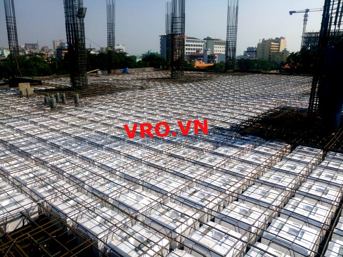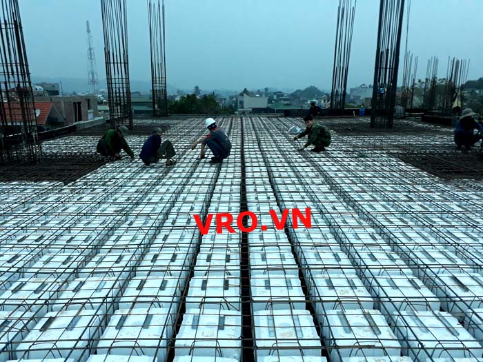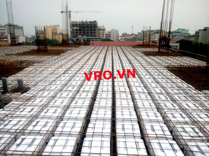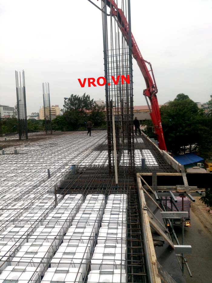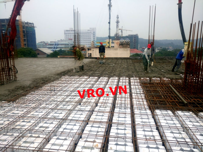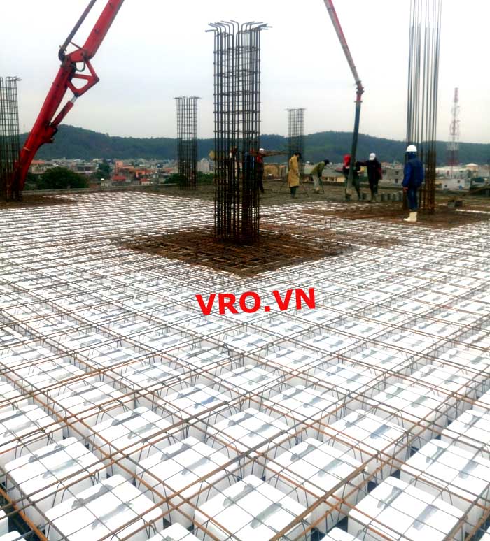 Sàn nhẹ, sàn lõi rỗng, sàn phẳng, sàn không dầm vượt nhịp lớn 3D PANEL VRO sàn tầng 5 công trình TTTM - Sầm Sơn- Thanh Hóa.