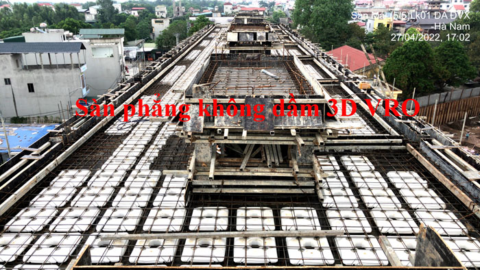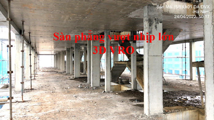 Thi công thực tế sàn phẳng, sàn phẳng vượt nhịp lớn, sàn phẳng không dầm 3D VRO tại nhà máy Vinsmart