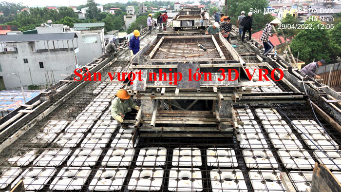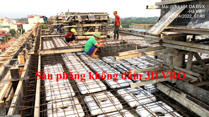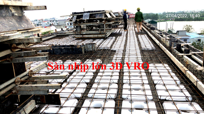 Sàn xốp, sàn phẳng lõi xốp, sàn phẳng xốp, Sàn phẳng, Sàn nhịp lớn, sàn vượt nhịp lớn, sàn phẳng không dầm, sàn phẳng vượt nhịp lớn 3D VRO - Thi công sàn tầng 5 liền kề 01 Đồng Văn Xanh, Hà Nam.