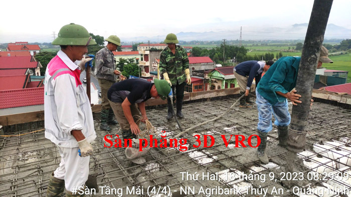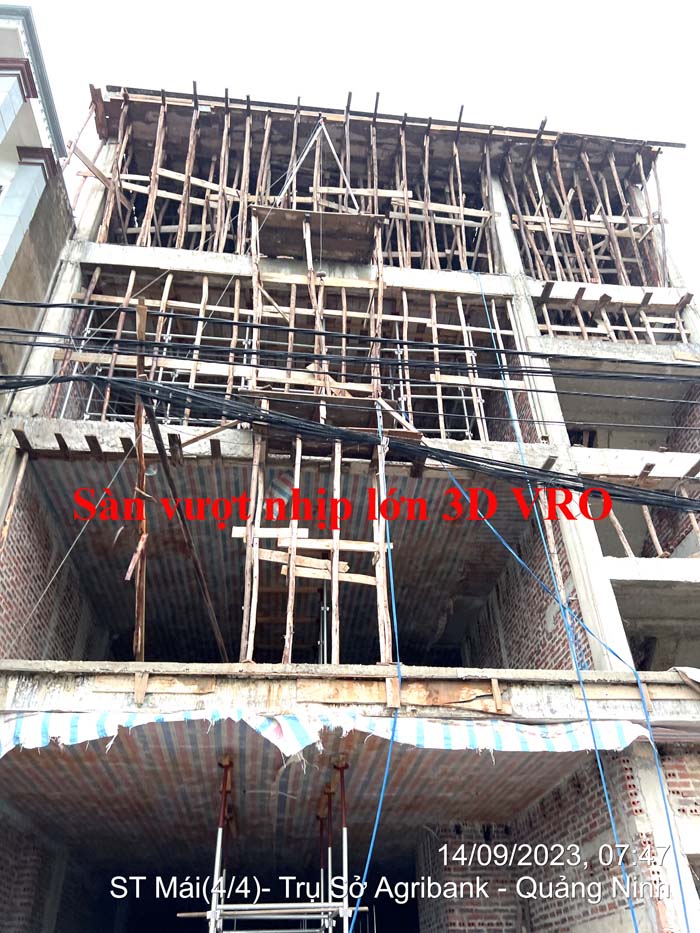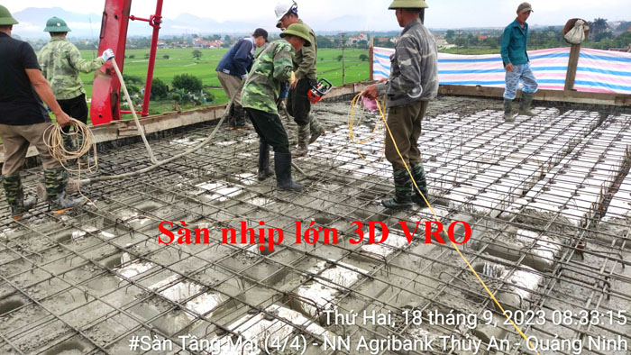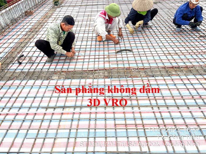 Sàn phẳng, Sàn nhịp lớn, sàn xốp, sàn phẳng lõi xốp, sàn vượt nhịp lớn, sàn phẳng không dầm, sàn phẳng vượt nhịp lớn 3D VRO - Thi công sàn mái Ngân Hàng Agribank, Đông Triều, Quảng Ninh.