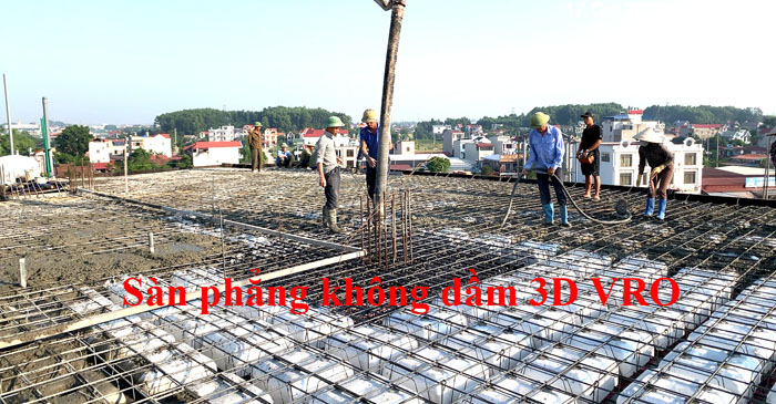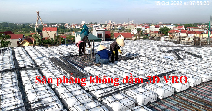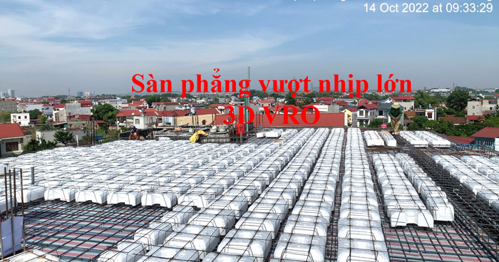 Sàn nhịp lớn, sàn vượt nhịp lớn, sàn phẳng, sàn không dầm, sàn phẳng không dầm, sàn xốp, sàn phẳng lõi xốp, sàn phẳng vượt nhịp lớn VRO - Thi công sàn tầng Tum KS Minh Hiền, Bắc Giang.
