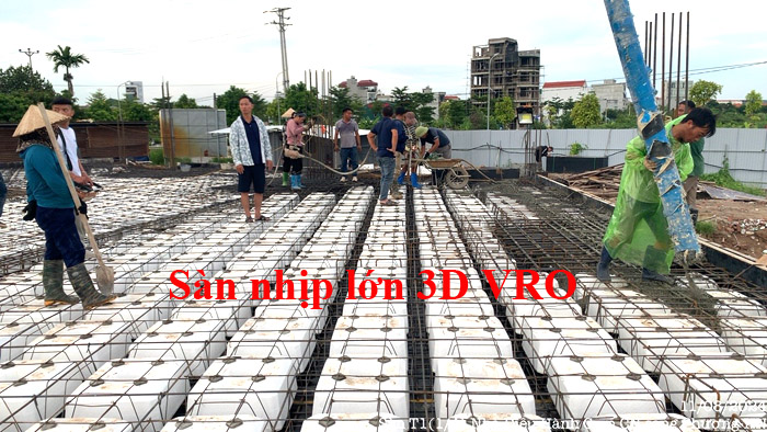 Sàn phẳng, sàn phẳng không dầm, sàn nhịp lớn, sàn xốp, sàn phẳng lõi xốp, sàn vượt nhịp lớn 3D VRO - Thi công sàn tầng 1 nhà điều hành cụm Công Nghiệp Song Phượng, Hà Nội.