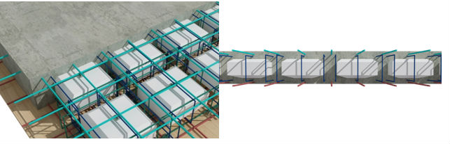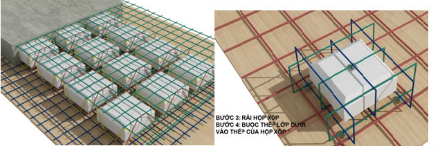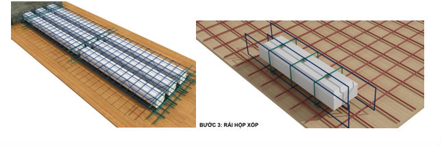 - Định vị khối rỗng chắc chắn, không cho phép khối rỗng bị đẩy nổi hoặc xê dịch khi đầm bê tông, giúp tạo được hệ kết cấu như ý đồ thiết kế với đầy đủ lớp bê tông bảo vệ cốt thép;