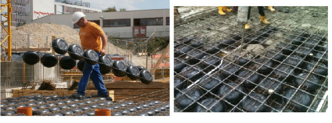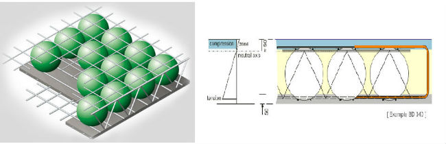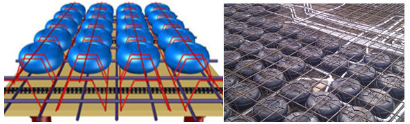 Sử dụng bóng nhựa đặt ở vùng giữa của bản sàn,cốt thép chịu lực thường được làm từ lưới théphàn cường độ cao kết hợp với các thép tăng cường.