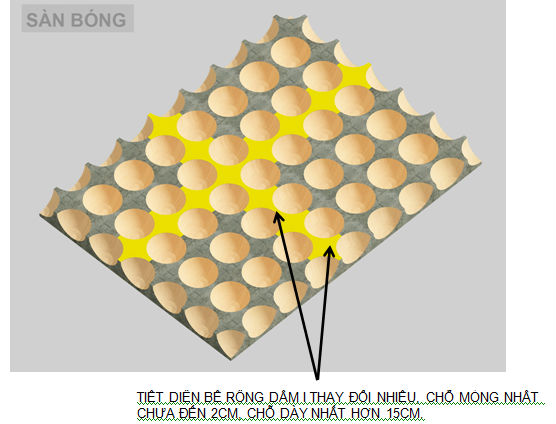 - Vị trí sườn chỗ giáp 2 quả bóng rất mỏng (hình 4c), vị trí này dễ bị tập trung ứng suất gây mỏi và vỡ trong gây võng sàn theo thời gian;