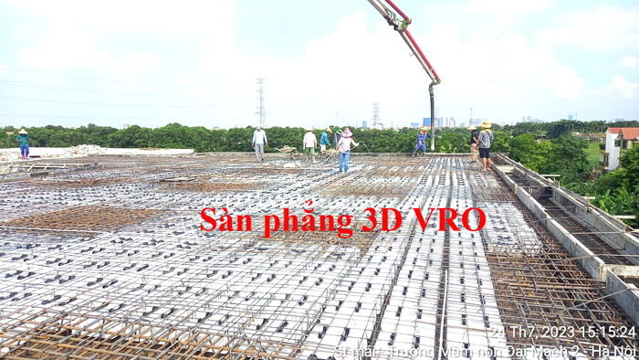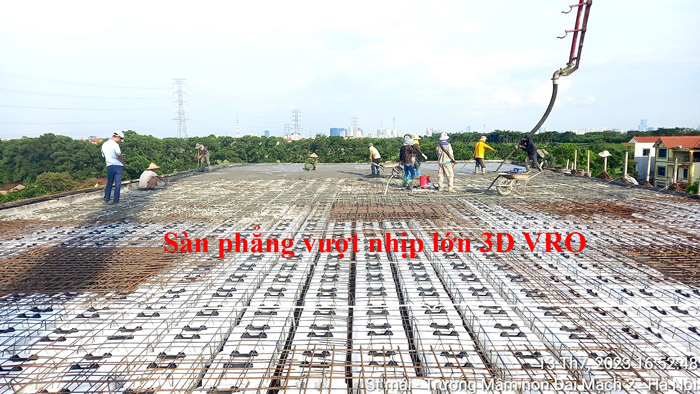 Sàn phẳng, sàn phẳng lõi xốp, sàn xốp, sàn vượt nhịp lớn, sàn nhịp lớn, sàn phẳng không dầm, sàn phẳng vượt nhịp lớn 3D VRO - Thi công sàn mái, khối 2, 3 dứ án Dự Án Đồng Văn Dự, Hà Nội.