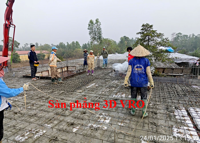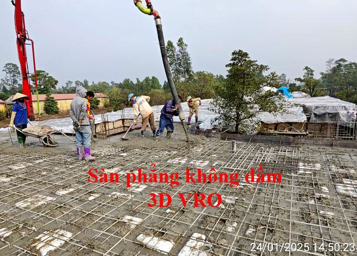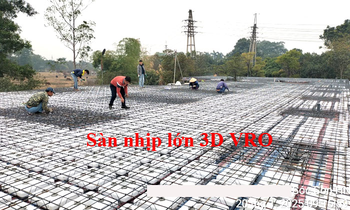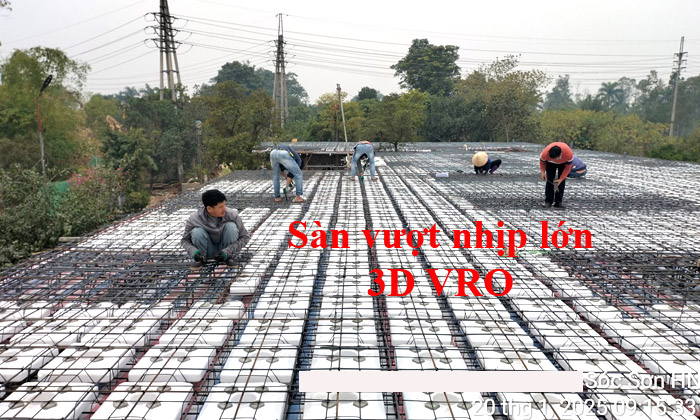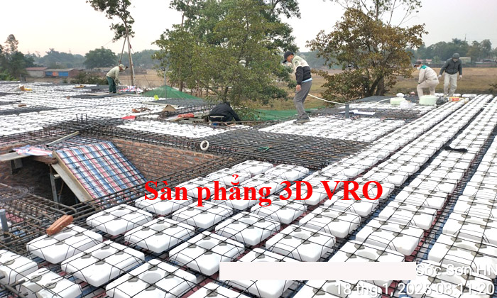 Sàn phẳng, sàn phẳng vượt nhịp lớn, sàn nhịp lớn sàn phẳng không dầm, sàn xốp, sàn phẳng lõi xốp, sàn vượt nhịp lớn 3D VRO - Thi công sàn 1 ct Trung Lương, Sóc Sơn, Hà Nội.
