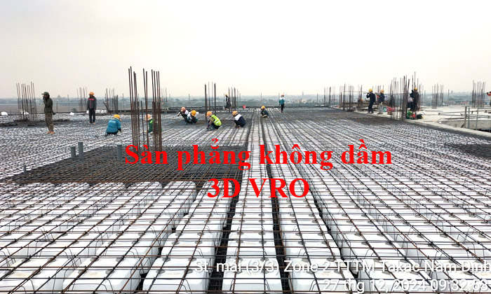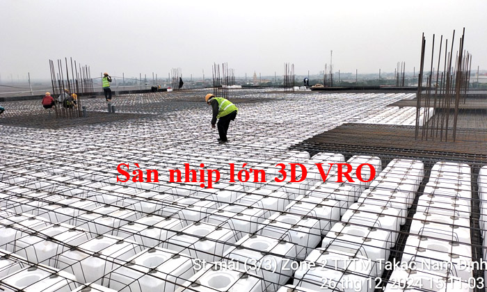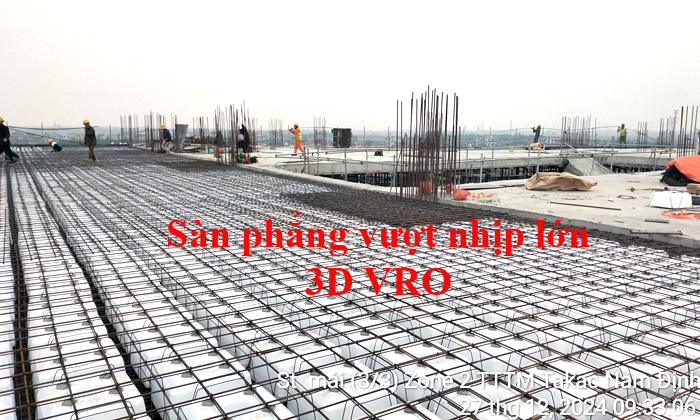 Sàn phẳng, sàn phẳng vượt nhịp lớn, sàn phẳng không dầm, sàn xốp, sàn phẳng lõi xốp, sàn vượt nhịp lớn 3D VRO - Thi công sàn 3 zone 2 TTTM Taka, Nam Định.