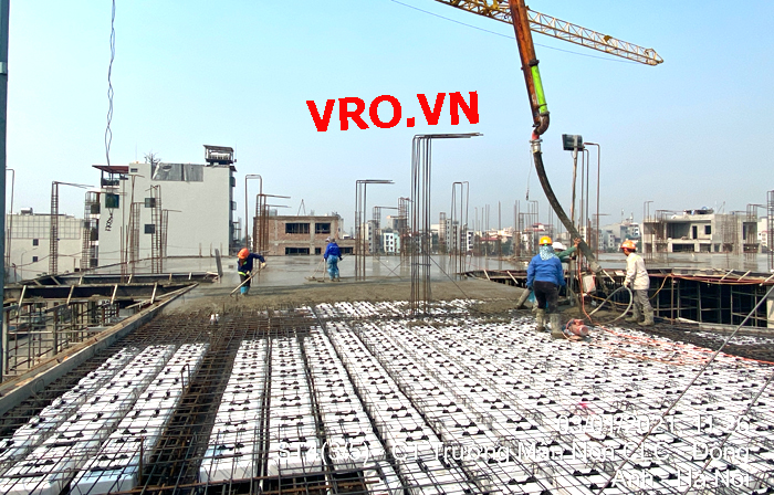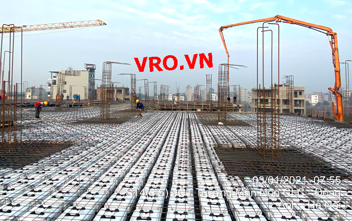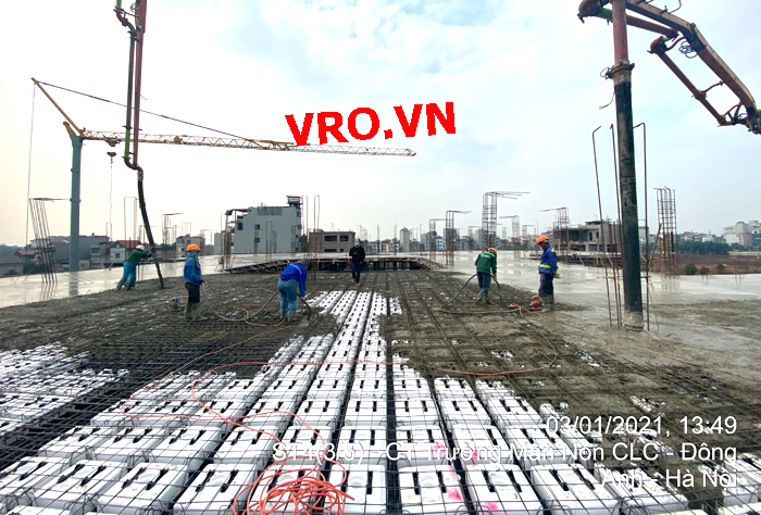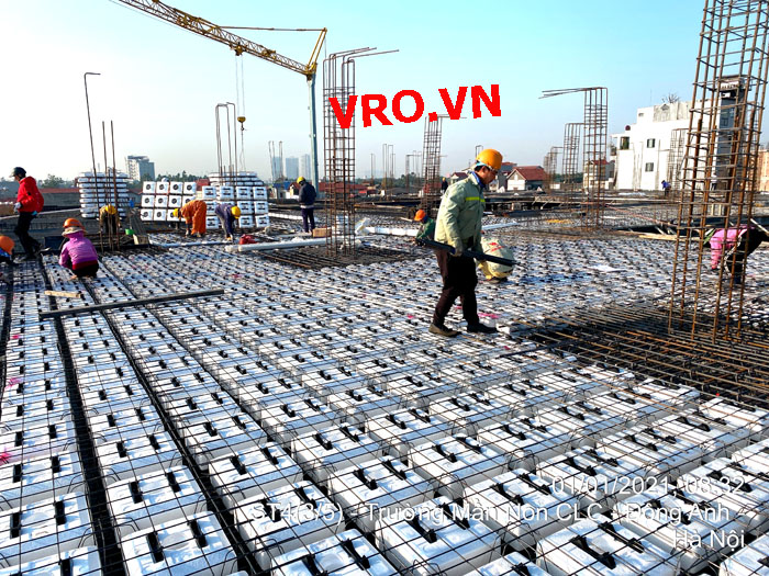 Sàn nhịp lớn, Sàn nhẹ, sàn phẳng, sàn phẳng vượt nhịp lớn, sàn vượt nhịp lớn, sàn không dầm, sàn phẳng không dầm, thi công nhanh 3D PANEL VRO - Những hình ảnh thi công sàn tầng 4 trường mầm non CLC Đông Anh - Hà Nội.
