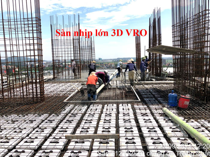 Sàn phẳng, sàn vượt nhịp lớn, sàn không dầm, sàn phẳng vượt nhịp lớn, sàn phẳng không dầm, sàn xốp, sàn phẳng lõi xốp vượt nhịp lớn VRO - Thi công sàn tầng 12+14 tòa N3 chung cư Thống NHất - Bắc Ninh.