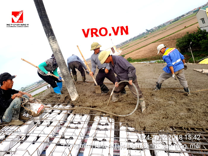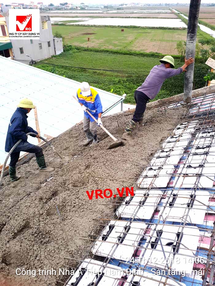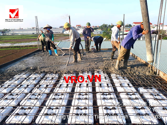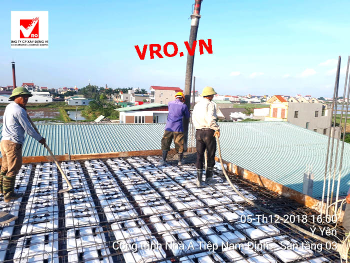Sàn vượt nhịp lớn, Sàn nhịp lớn, Sàn nhẹ, sàn phẳng, sàn phẳng vượt nhịp lớn, sàn phẳng không dầm, sàn cách âm, sàn cách nhiệt, thi công nhanh 3D PANEL VRO. - Những hình ảnh thi công sàn tầng 3 + sàn Mái Showroom Minh Tiệp - Nam Định .