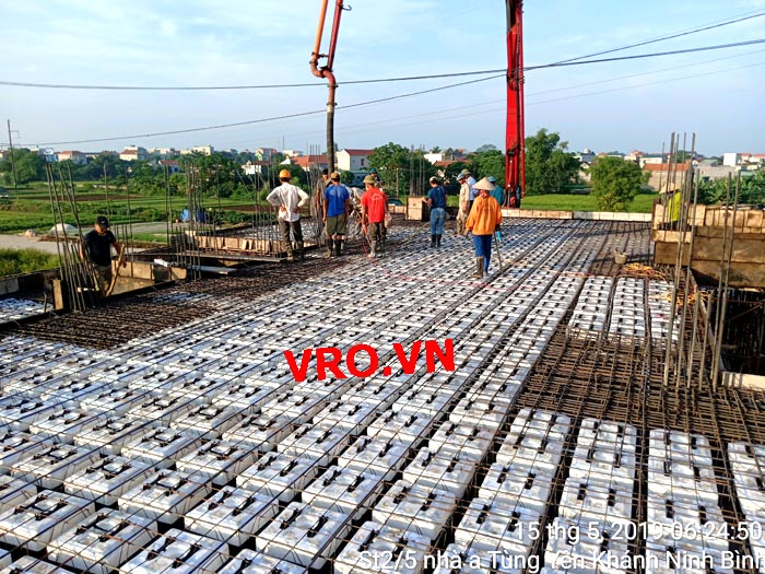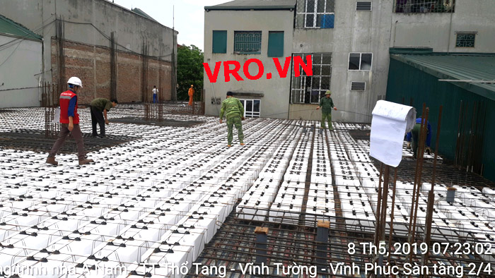 Sàn vượt nhịp lớn, sàn phẳng, Sàn phẳng lõi xốp, sàn xốp 3D VRO- thi Công chung cư 379 khối B- Thanh Hóa