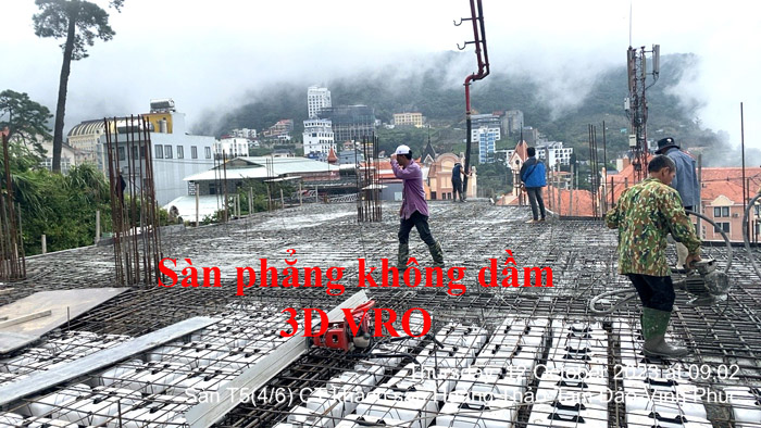 Sàn phẳng, sàn vượt nhịp lớn, sàn phẳng không dầm, sàn phẳng vượt nhịp lớn, sàn xốp, sàn phẳng lõi xốp, sàn vượt nhịp lớn 3D VRO - Thi công sàn 5 KS Hoàng Thảo, Vĩnh Phúc.