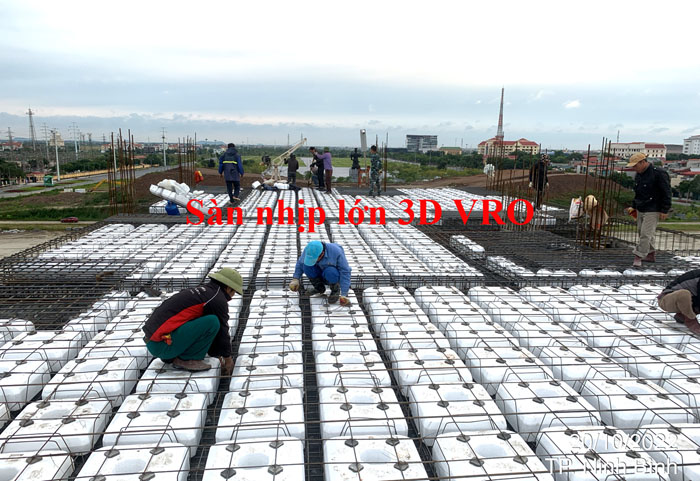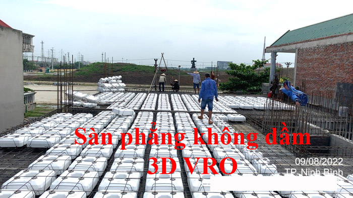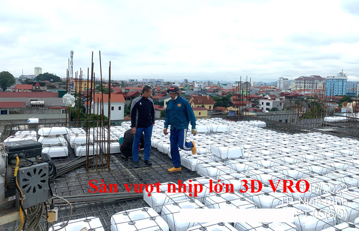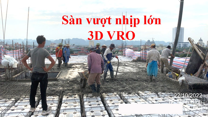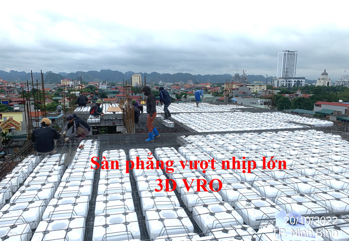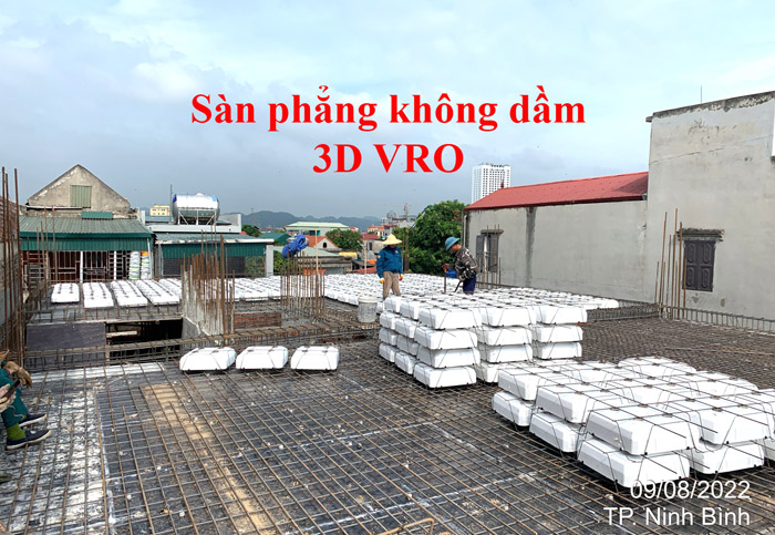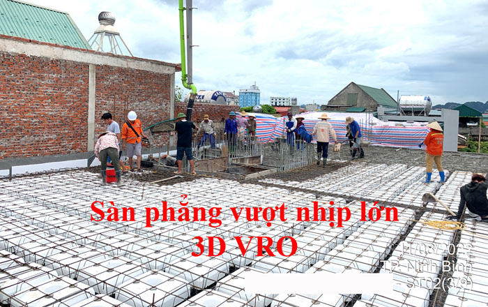 Sàn phẳng, Sàn nhịp lớn, sàn vượt nhịp lớn, sàn phẳng không dầm, sàn phẳng vượt nhịp lớn, sàn xốp, sàn phẳng lõi xốp vượt nhịp lớn VRO - Thi công sàn tầng 3 văn phòng Thái Dương, Ninh Bình.