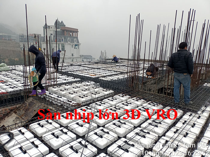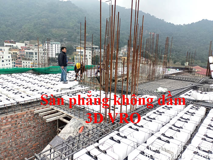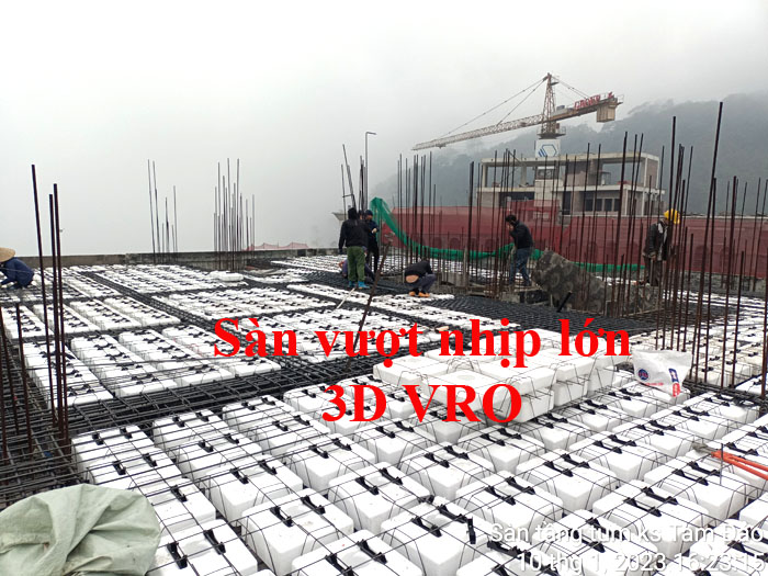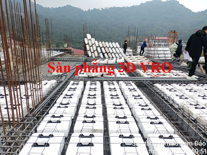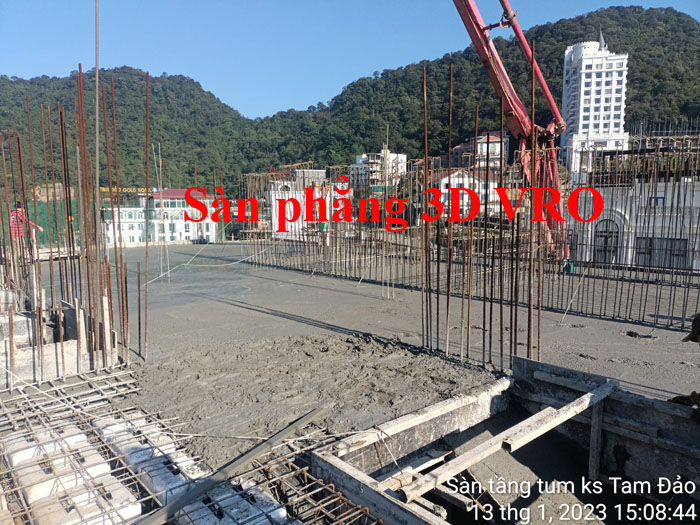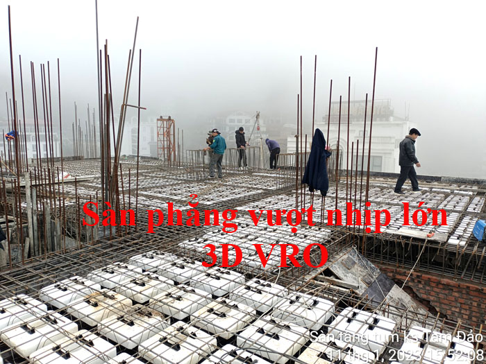 Sàn phẳng, sàn vượt nhịp lớn, sàn nhịp lớn, sàn phẳng không dầm, sàn xốp, sàn phẳng lõi xốp, sàn lõi rỗng, sàn phẳng vượt nhịp lớn VRO - Thi công sàn tầng Tum KS Tam Đảo, Vĩnh Phúc.