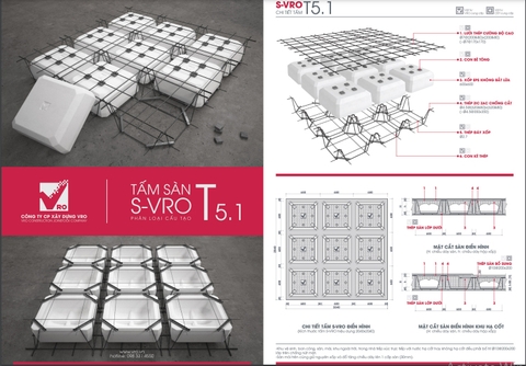 Sàn phẳng, sàn xốp, sàn phẳng lõi xốp, sàn phẳng vượt nhịp lớn-Tấm sàn xốp T1 VRO
