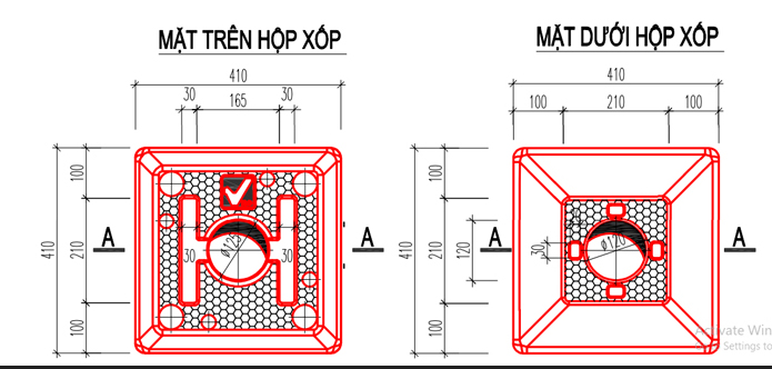 Sàn phẳng, sàn xốp, sàn phẳng vượt nhịp lớn, sàn phẳng không dầm 3D VRO-Mặt cắt sàn xốp điển hình khu hạ cốt