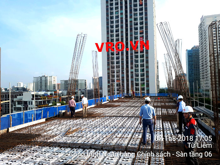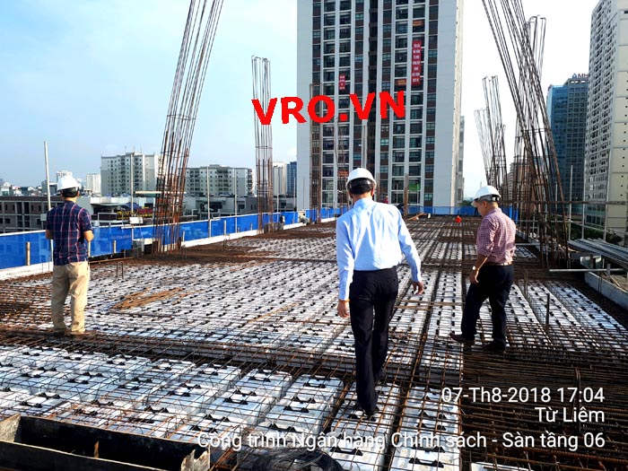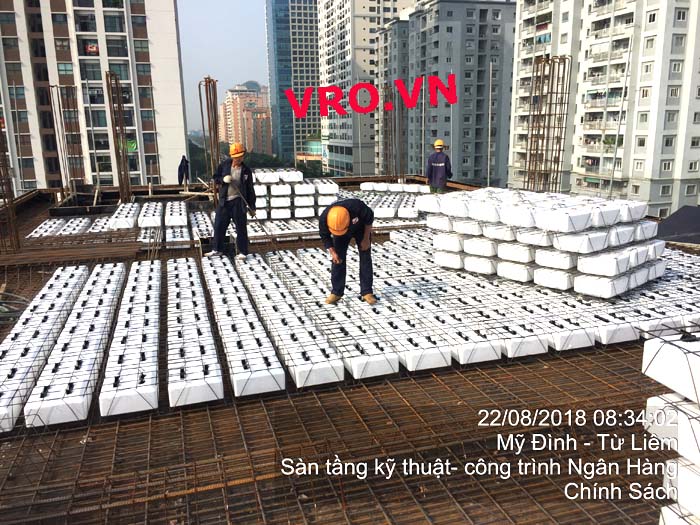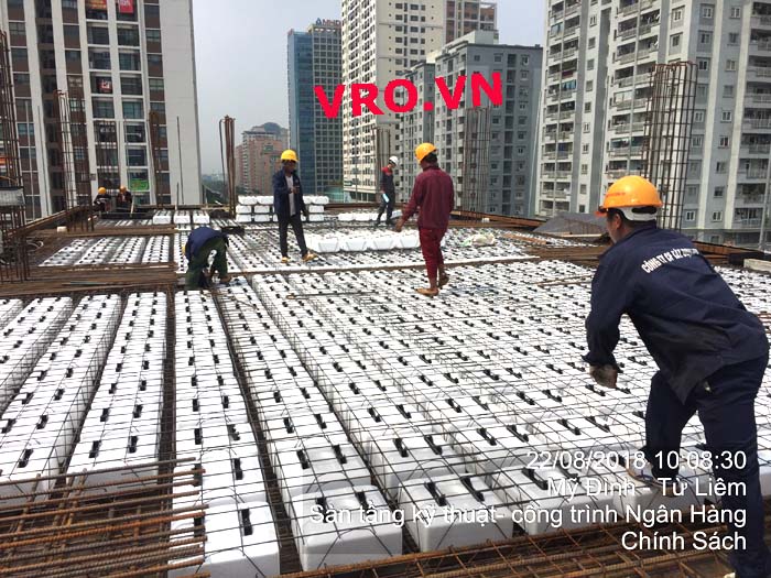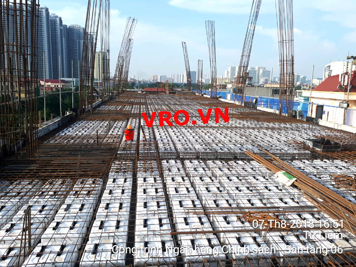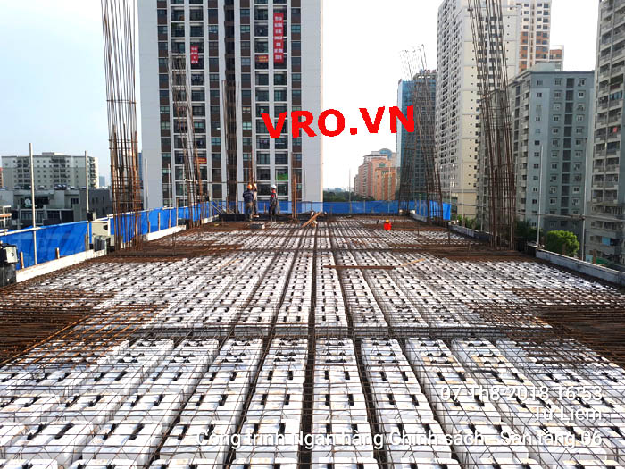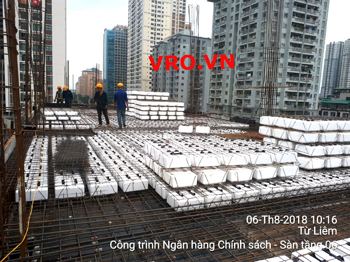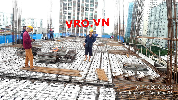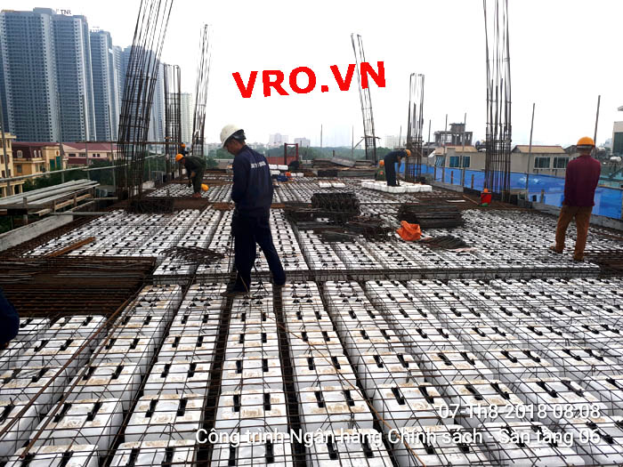 Sàn nhịp lớn, sàn không dầm 3D PANEL VRO - Những hình ảnh thi công công nghệ xây dựng sàn nhịp lớn, sàn không dầm lõi rỗng 3D Panel VRO sàn tầng 6 công trình Ngân Hàng Chính Sách Hà Nội - Từ Liêm -Hà Nội.