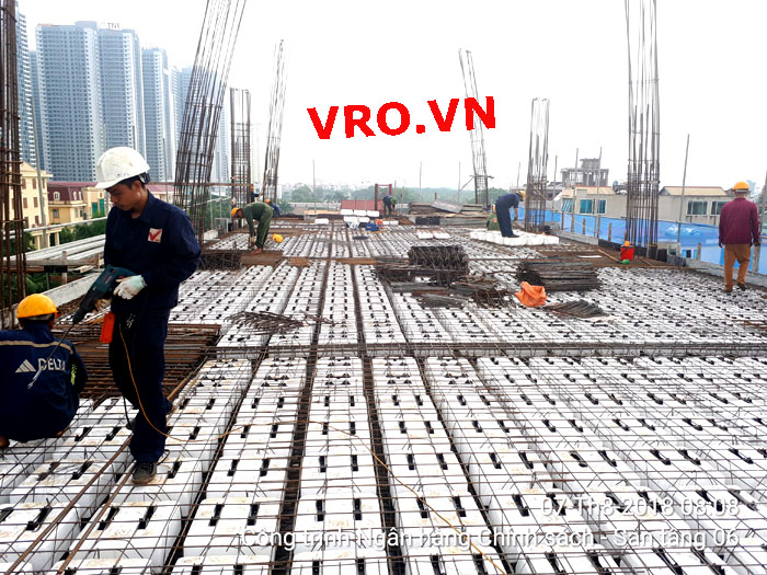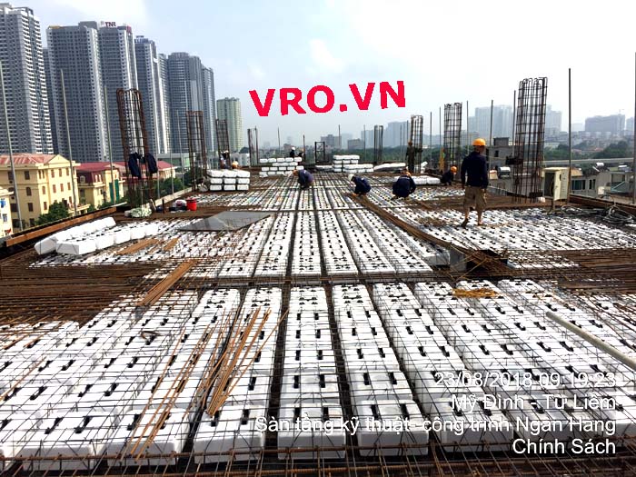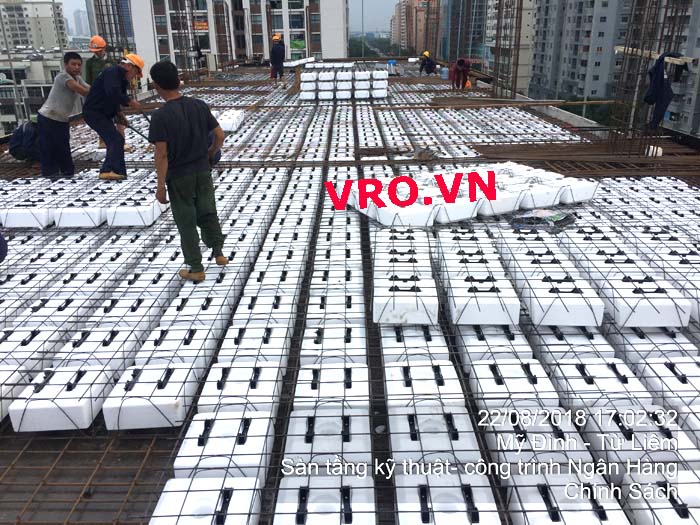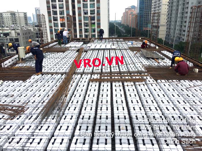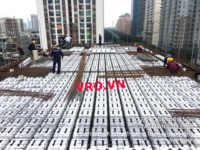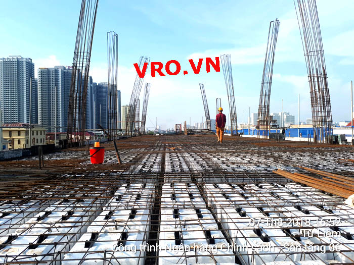 Sàn nhịp lớn, sàn phẳng, sàn vượt nhịp lớn, sàn phẳng không dầm, sàn không dầm, sàn phẳng vượt nhịp lớn, sàn xốp 3D PANEL VRO - Những hình ảnh thi công công nghệ xây dựng sàn nhịp lớn, sàn không dầm lõi rỗng 3D Panel VRO sàn tầng 1 công trình Ngân Hàng Chính Sách Hà Nội - Từ Liêm -Hà Nội.