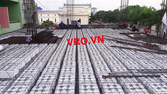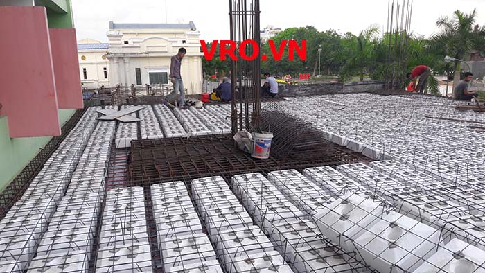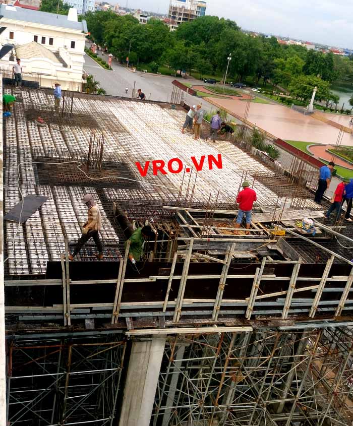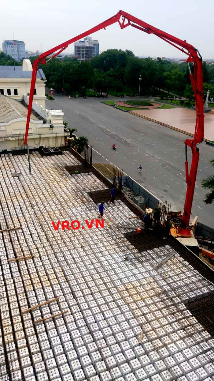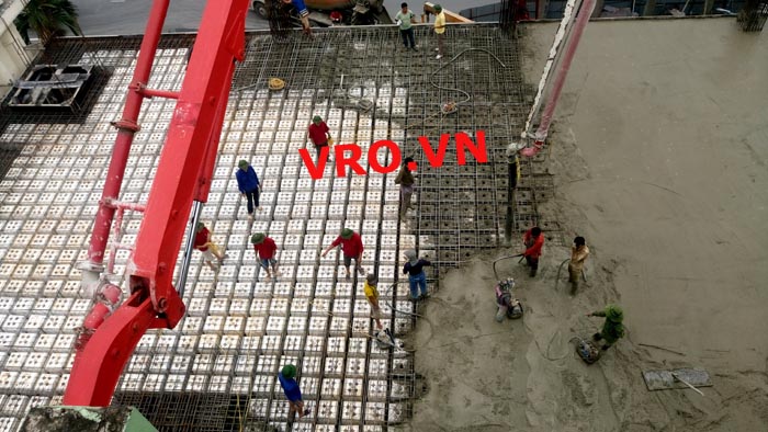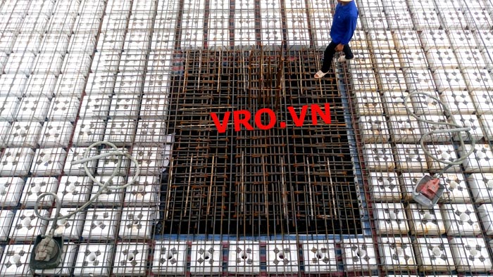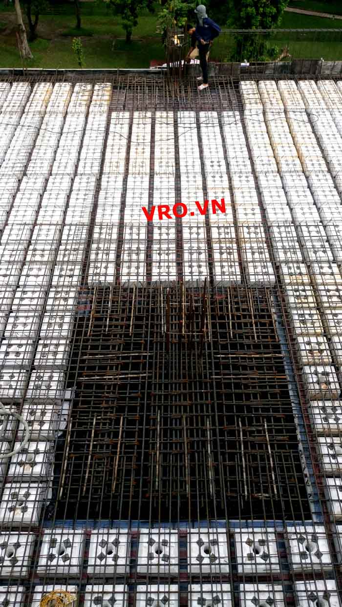 Sàn nhịp lớn, sàn vượt nhịp lớn, sàn không dầm, sàn phẳng, sàn nhẹ, sàn phẳng không dầm lõi rỗng 3D Panel VRO - Những hình ảnh thi công công nghệ sàn nhịp lớn, sàn không dầm lõi rỗng 3D Panel VRO nhà sảnh tầng 3 khách sạn Vị Hoàng Nam - Nam Định.