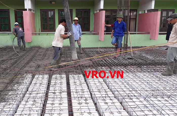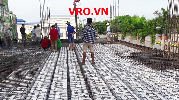 Sàn nhịp lớn, sàn vượt nhịp lớn, sàn không dầm, sàn phẳng, sàn phẳng vượt nhịp lớn, sàn nhẹ, sàn phẳng không dầm lõi rỗng 3D Panel VRO- Những hình ảnh thi công sàn nhịp lớn, sàn không dầm lõi rỗng 3D Panel VRO sàn tầng 2 công trình khách sạn Vị Hoàng Nam - Nam Định .