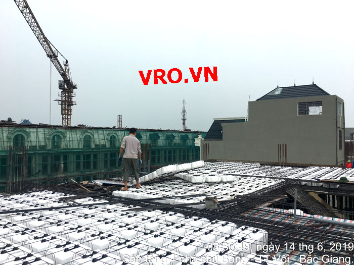 Sàn nhịp lớn, sàn xốp, sàn vượt nhịp lớn, sàn phẳng xốp, sàn phẳng lõi xốp, Sàn nhẹ, sàn phẳng, sàn phẳng vượt nhịp lớn lõi xốp 3D VRO, sàn phẳng không dầm, sàn cách âm, sàn cách nhiệt, thi công nhanh 3D PANEL VRO - Những hình ảnh thi công sàn tầng 1 công trình Nguyên Bằng - Bắc Giang.