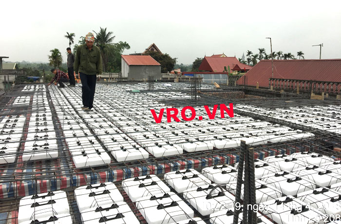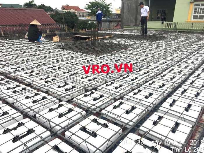 Sàn vượt nhịp lớn, sàn phẳng, sàn nhịp lớn, Sàn nhẹ, sàn phẳng không dầm vượt nhịp lớn 3D VRO - Những hình ảnh thi công sàn tầng 2 công trình biệt thự Minh Quang - Hải Phòng.