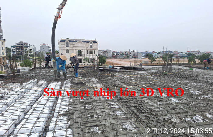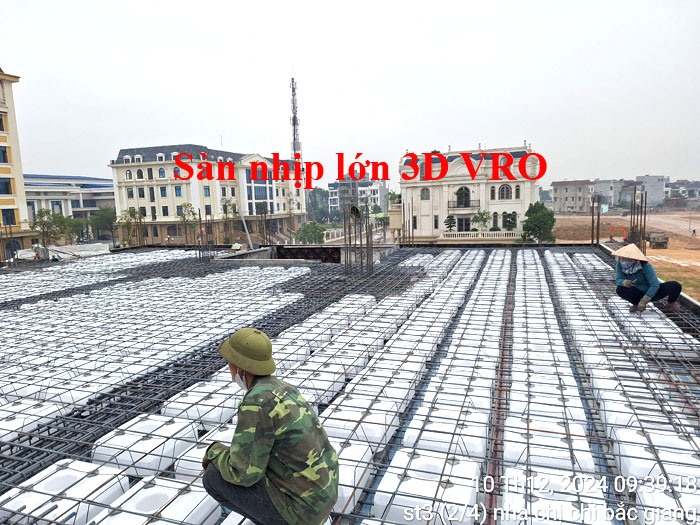 Sàn vượt nhịp lớn, Sàn phẳng, sàn nhịp lớn, sàn xốp, sàn phẳng lõi xốp, sàn phẳng không dầm, sàn phẳng vượt nhịp lớn VRO - Thi công sàn tầng 3 ct Linh Chi, Bắc Giang.