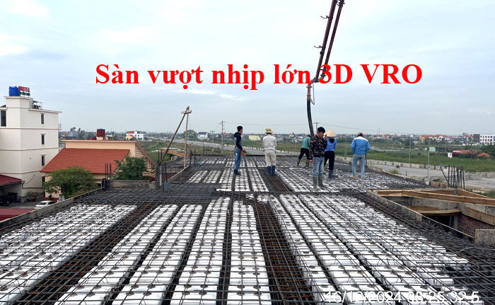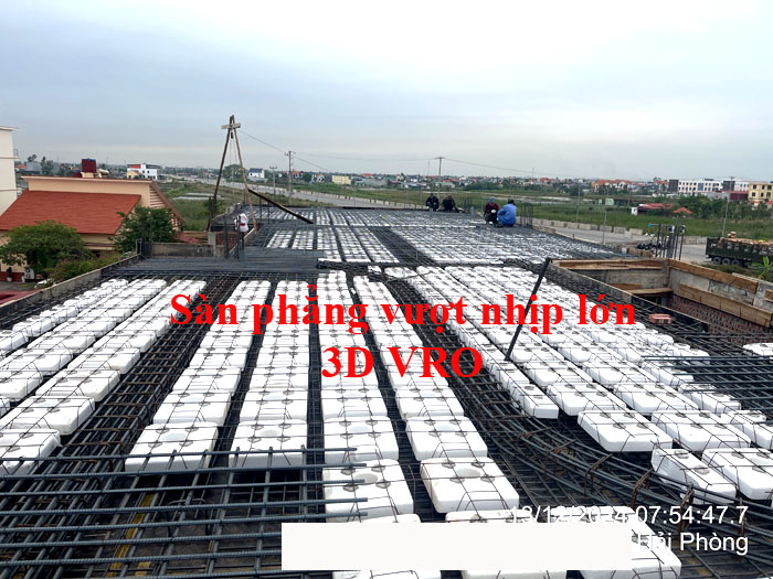 Sàn vượt nhịp lớn, Sàn phẳng, sàn nhịp lớn, sàn phẳng không dầm, sàn xốp, sàn phẳng lõi xốp, sàn phẳng vượt nhịp lớn 3D VRO - Thi công sàn tầng 3 cty Hoàng Hường, Hải Phòng.