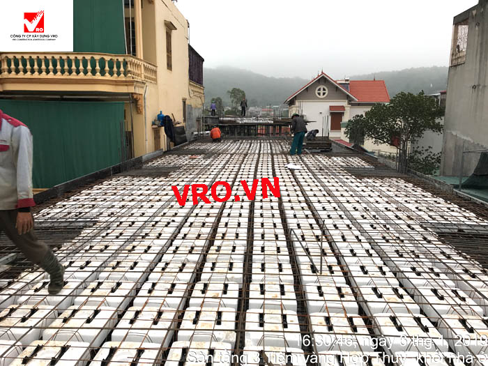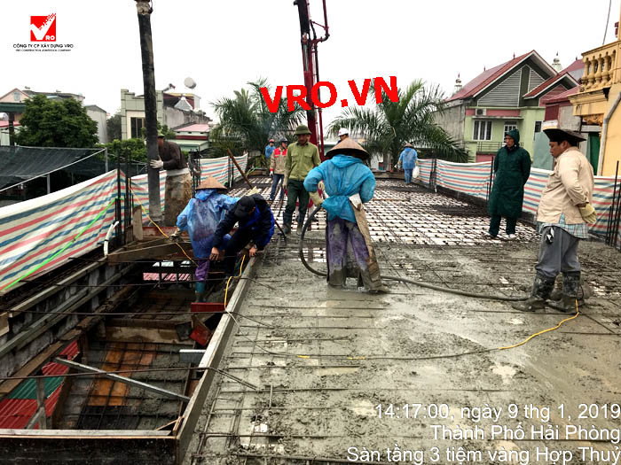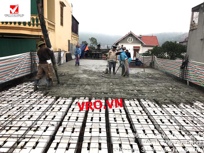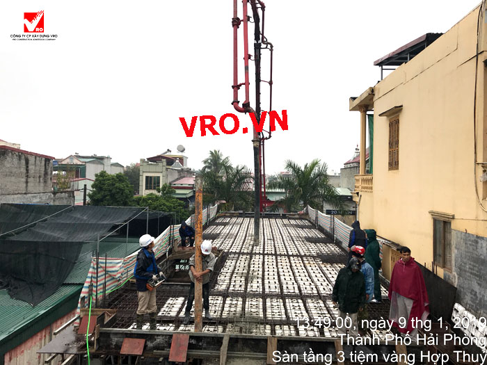 Sàn nhịp lớn, sàn phẳng, sàn vượt nhịp lớn, Sàn nhẹ, sàn phẳng vượt nhịp lớn, sàn phẳng không dầm, sàn cách âm, sàn cách nhiệt, thi công nhanh 3D PANEL VRO - Những hình ảnh thi công sàn tầng 3 Công trình Tiệm vàng Hợp Thủy - Hải Phòng.