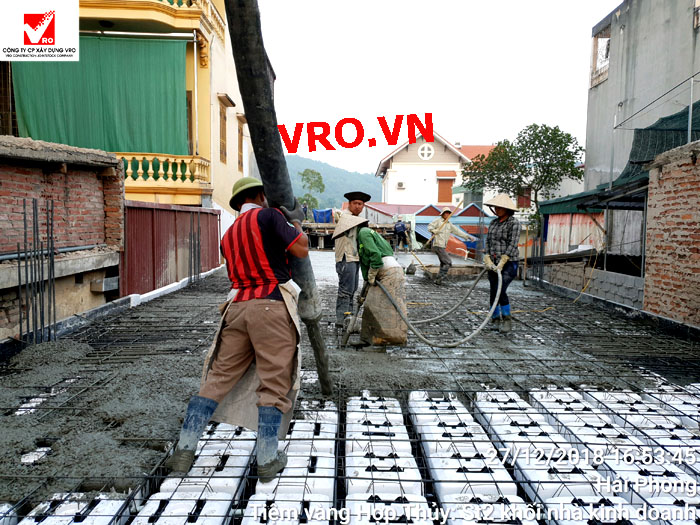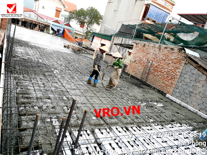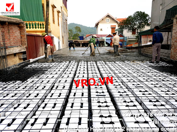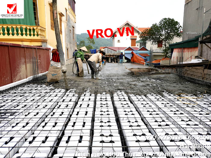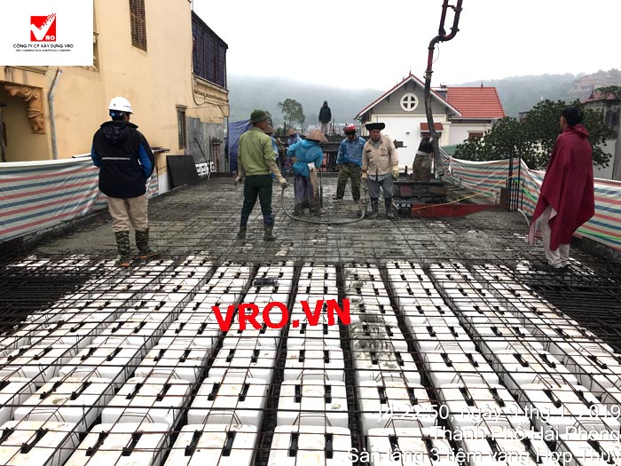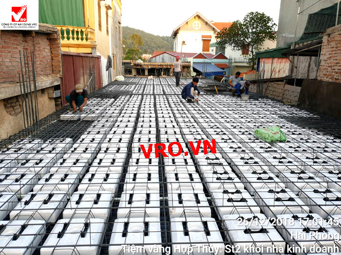 Sàn nhịp lớn, sàn phẳng, sàn vượt nhịp lớn, Sàn nhẹ, sàn phẳng vượt nhịp lớn, sàn phẳng không dầm, sàn cách âm, sàn cách nhiệt, thi công nhanh 3D PANEL VRO - Những hình ảnh thi công sàn tầng 2 Công trình Tiệm vàng Hợp Thủy - Hải Phòng