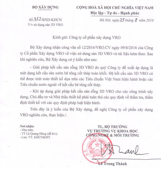 6. Chứng nhận công nghệ của BXD với sản phẩm công nghệ sàn phẳng, sàn xốp VRO