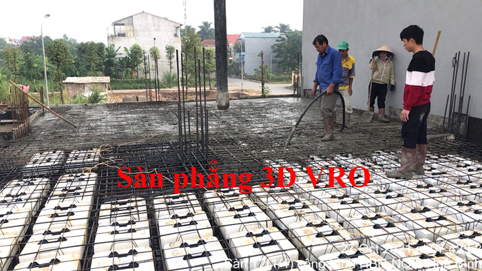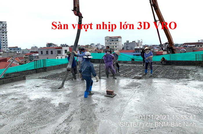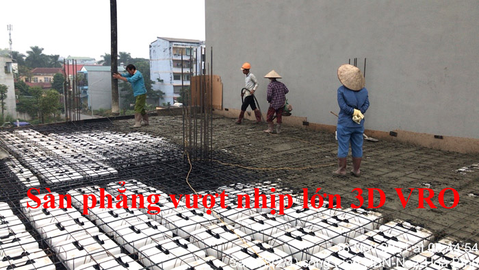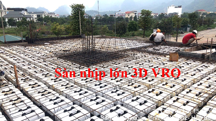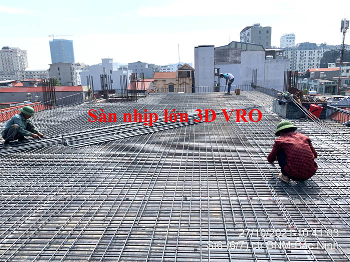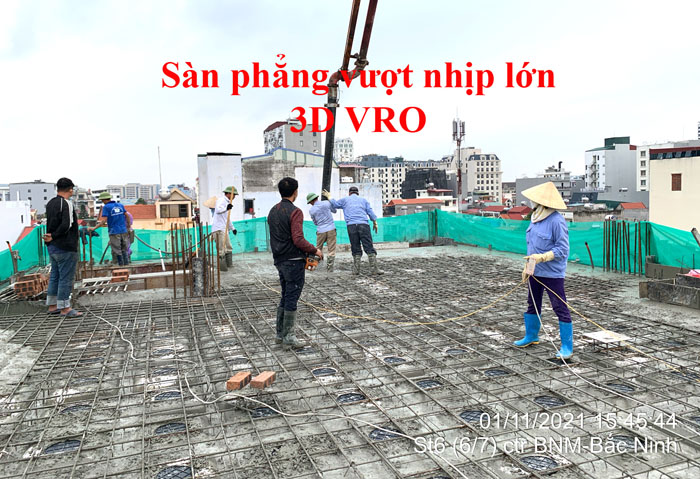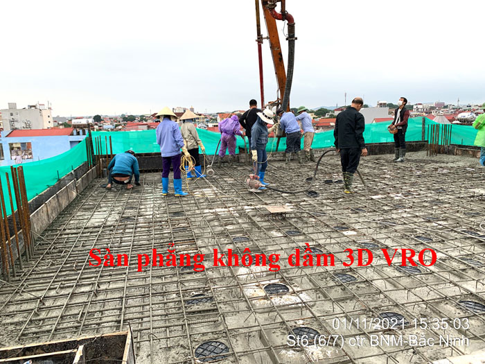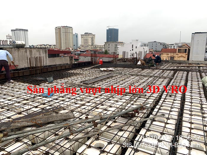 Sàn phẳng, sàn vượt nhịp lớn, sàn phẳng vượt nhịp lớn, sàn nhịp lớn, sàn phẳng không dầm, sàn xốp, sàn phẳng lõi xốp vượt nhịp lớn 3D VRO - Thi công sàn tầng 3 + sàn tầng 4 công trình số 2 Hồng Nhung - Hòa Binh + sàn tầng 6 công trình Đức Mạnh - Bắc Ninh.