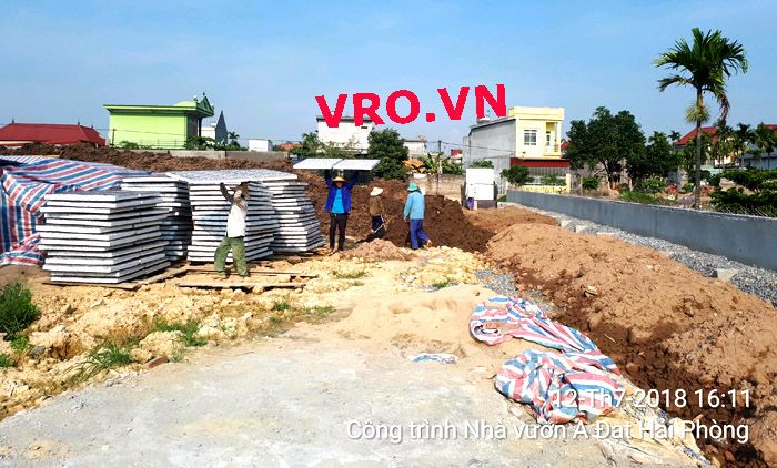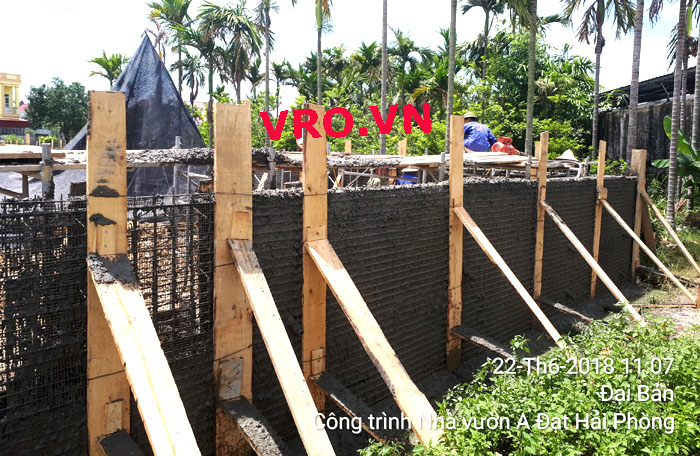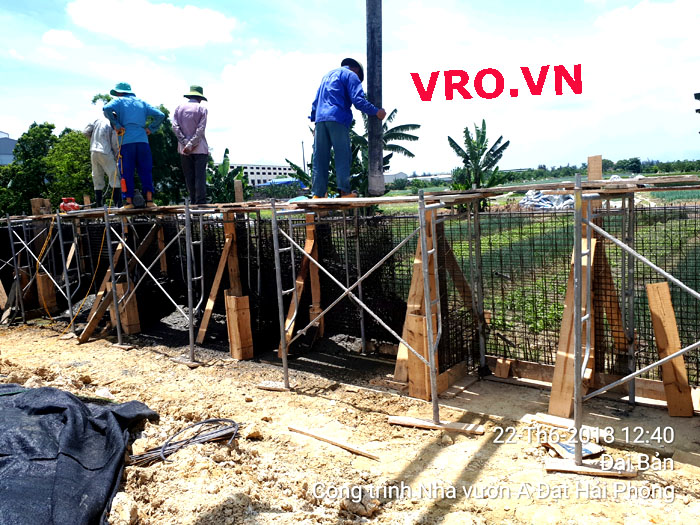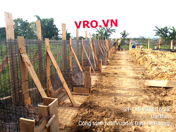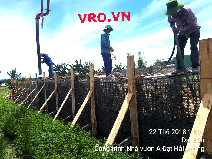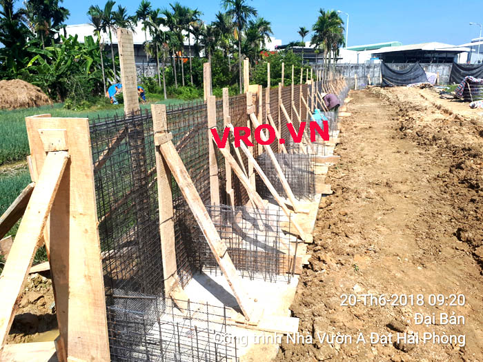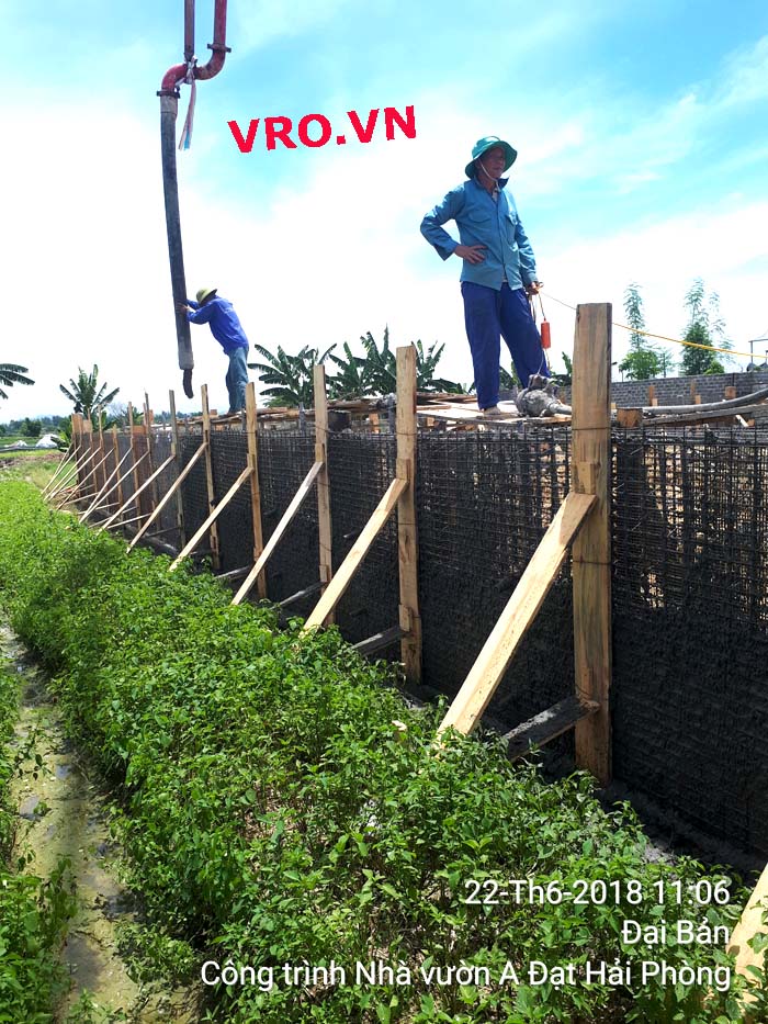 Giải pháp Tường bê tông 3D chắn đất không cốp pha. Tường rào bao che nhẹ, thi công nhanh 3D PANEL VRO - Những hình ảnh thi công tường bao nhà vườn Anh Đạt - Hải Phòng.